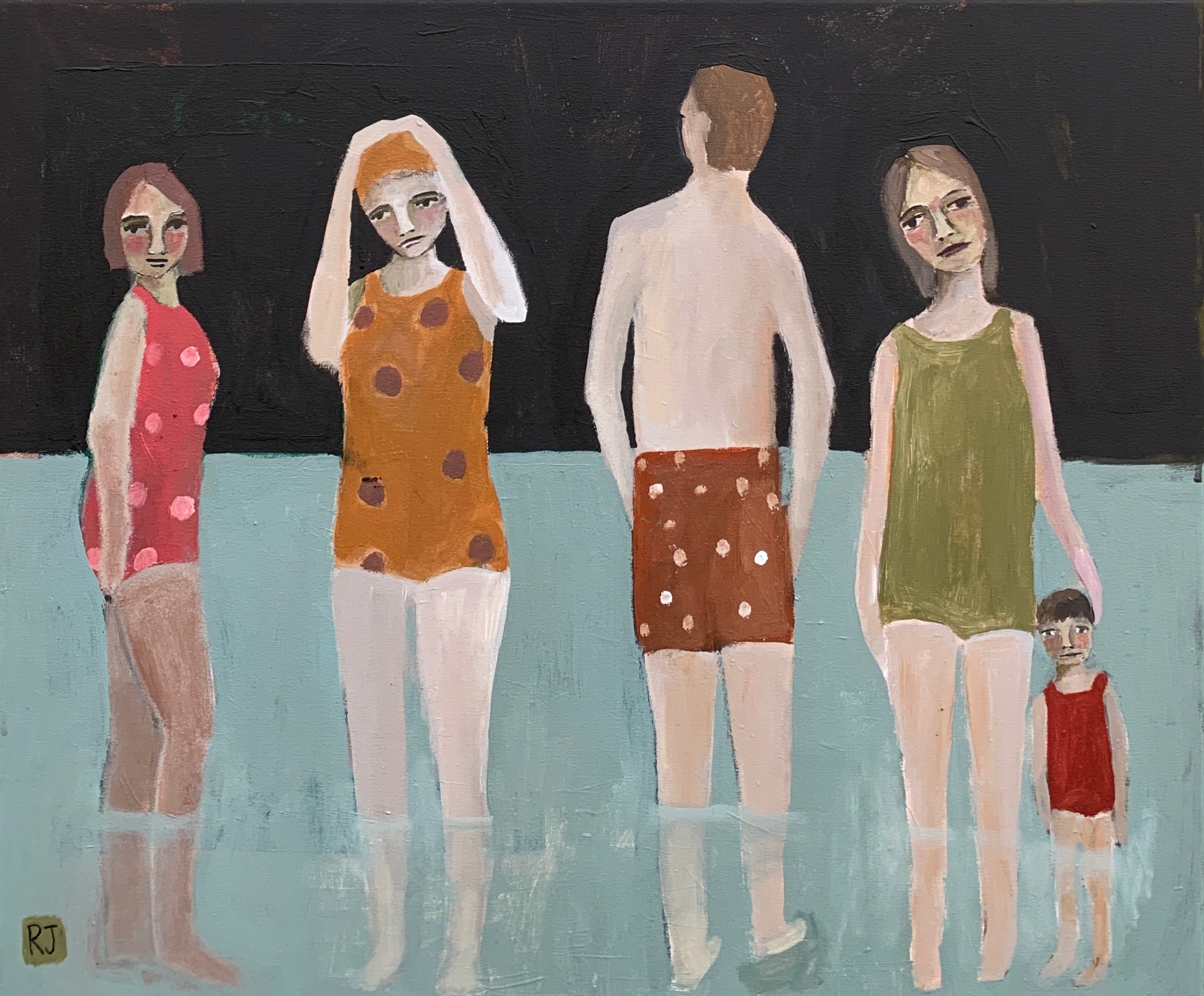 I hope that my art captures something true about the world — the beauty of the ordinary, the complexity of human interaction, the intensity of an emotion. My art is largely figurative and I attempt to represent what I see and experience with a sense of appreciation and humour. My work is colourful and eye-catching and can tend towards the naive, sometimes incorporating elements of fantasy. I like my art to tell a story, to prompt the viewer to think ‘I know exactly how that feels,’ or to inspire a sense of joy, longing or nostalgia.