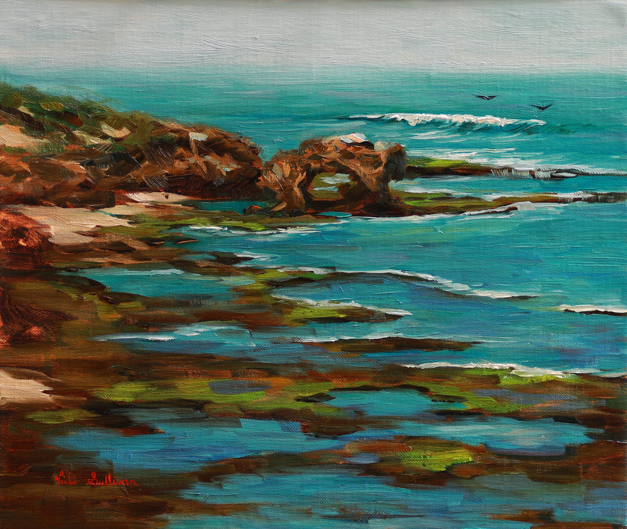 Low tide at Bridgewater bay,  Plein Air painting by Vicki Sullivan – I love the way nature is always changing in the light. This painting was painted plein air, on site at Blairgowrie on the Mornington Peninsula.