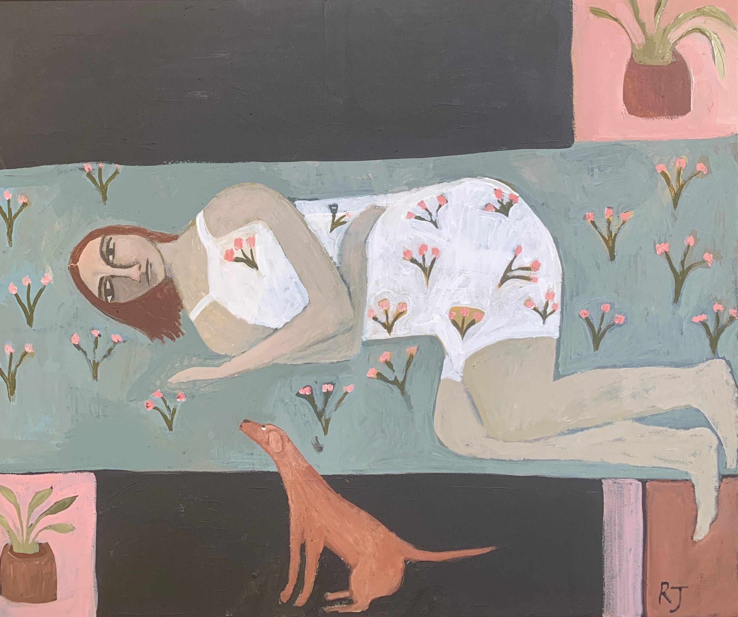 I hope that my art captures something true about the world — the beauty of the ordinary, the complexity of human interaction, the intensity of an emotion. My art is largely figurative and I attempt to represent what I see and experience with a sense of appreciation and humour. My work is colourful and eye-catching and can tend towards the naive, sometimes incorporating elements of fantasy. I like my art to tell a story, to prompt the viewer to think ‘I know exactly how that feels,’ or to inspire a sense of joy, longing or nostalgia.