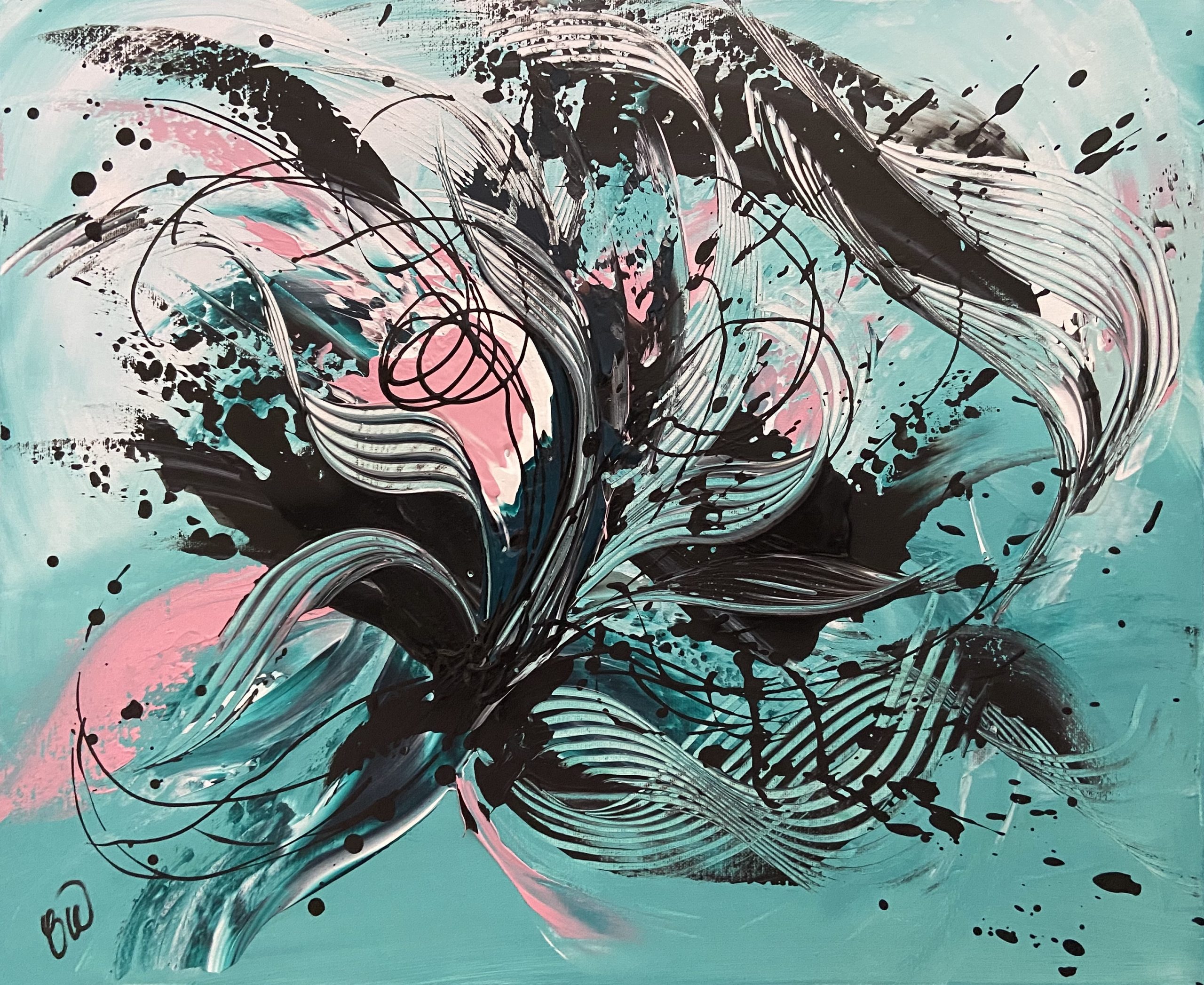 Lucid Dream by Carrie Welsh is a beautiful abstract piece that has a lovely colour combination and is full of life and movement. This will brighten any space. 50 x 60 cm. Acrylic on canvas, ready to hang.