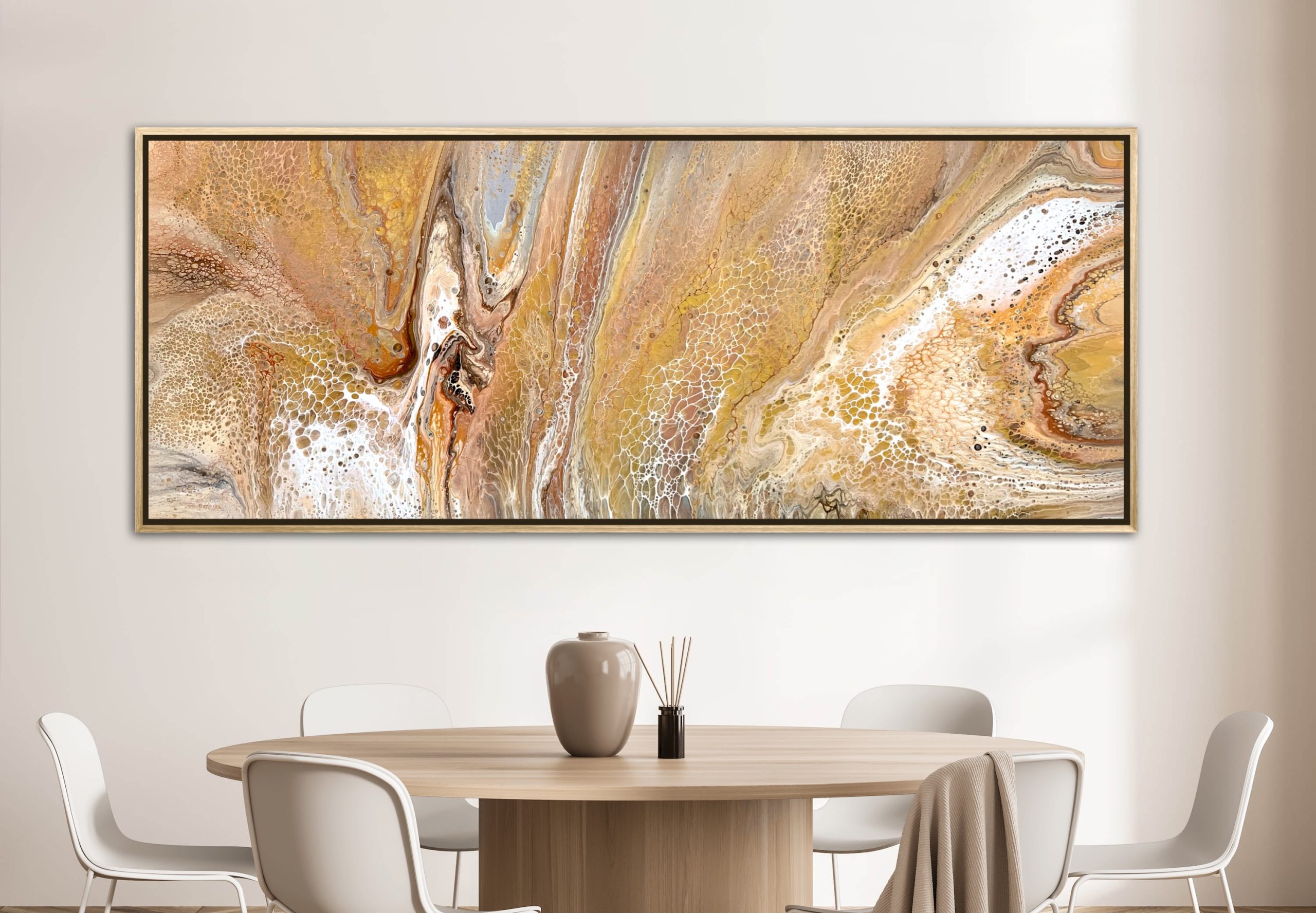 Luminous Sands by Angela Roskell – an extra large multi-directional abstract acrylic painting stretched and ready to hang.