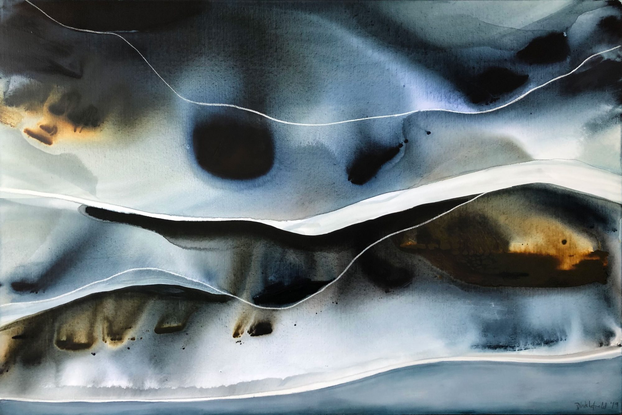 Lumos 152 is inspired by the light, the colours and the natural beauty of the Noosa region of Australia. “What I love most about Noosa is the interplay of light. From the oceans to the clouds, to the river estuaries and the hinterland, this canvas unfolds before me every day and finds expression in my paintings”.