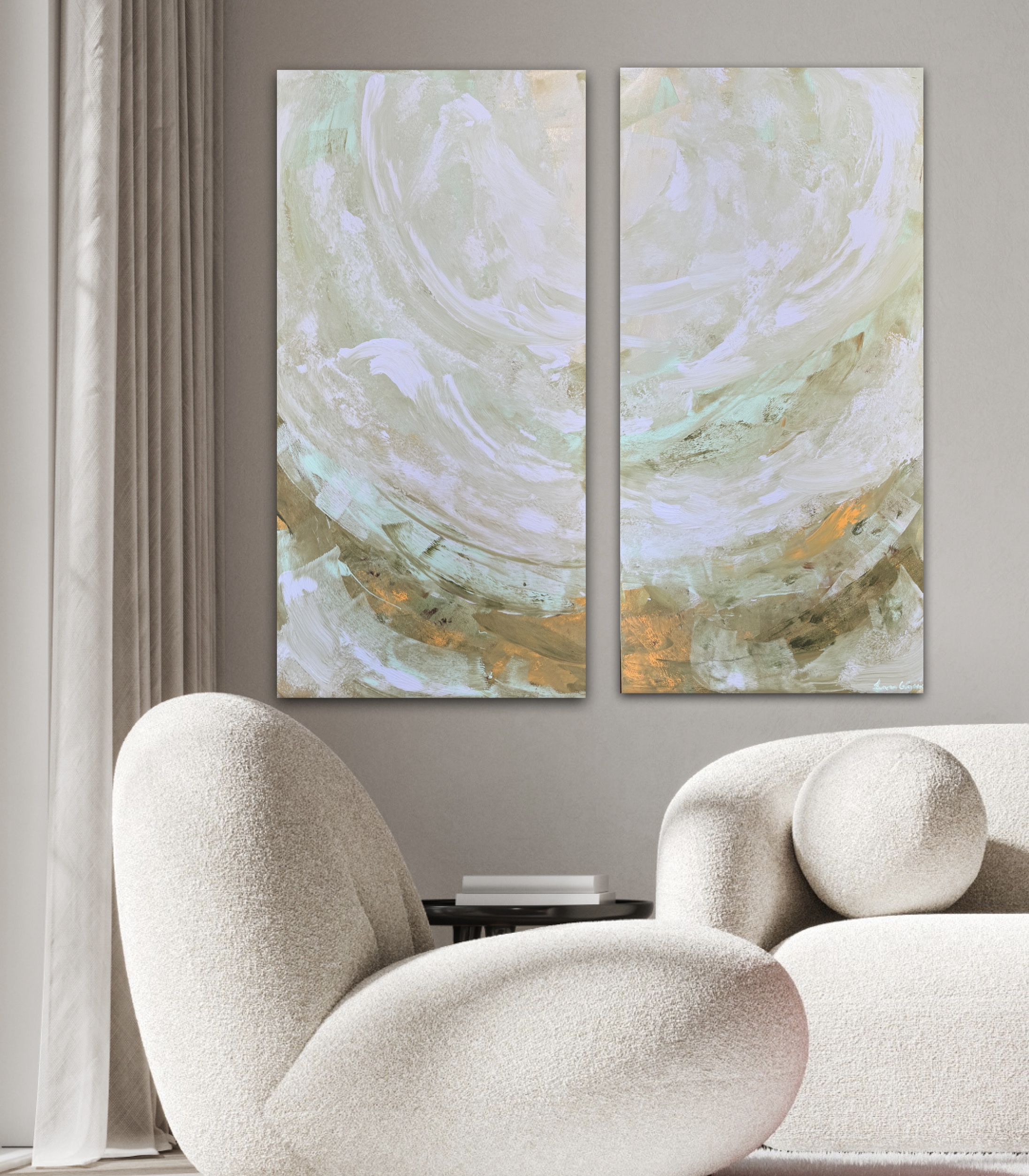 This is a set of two paintings that can be hung side by side together or separate. Size of each artwork is 50 x 100cm.