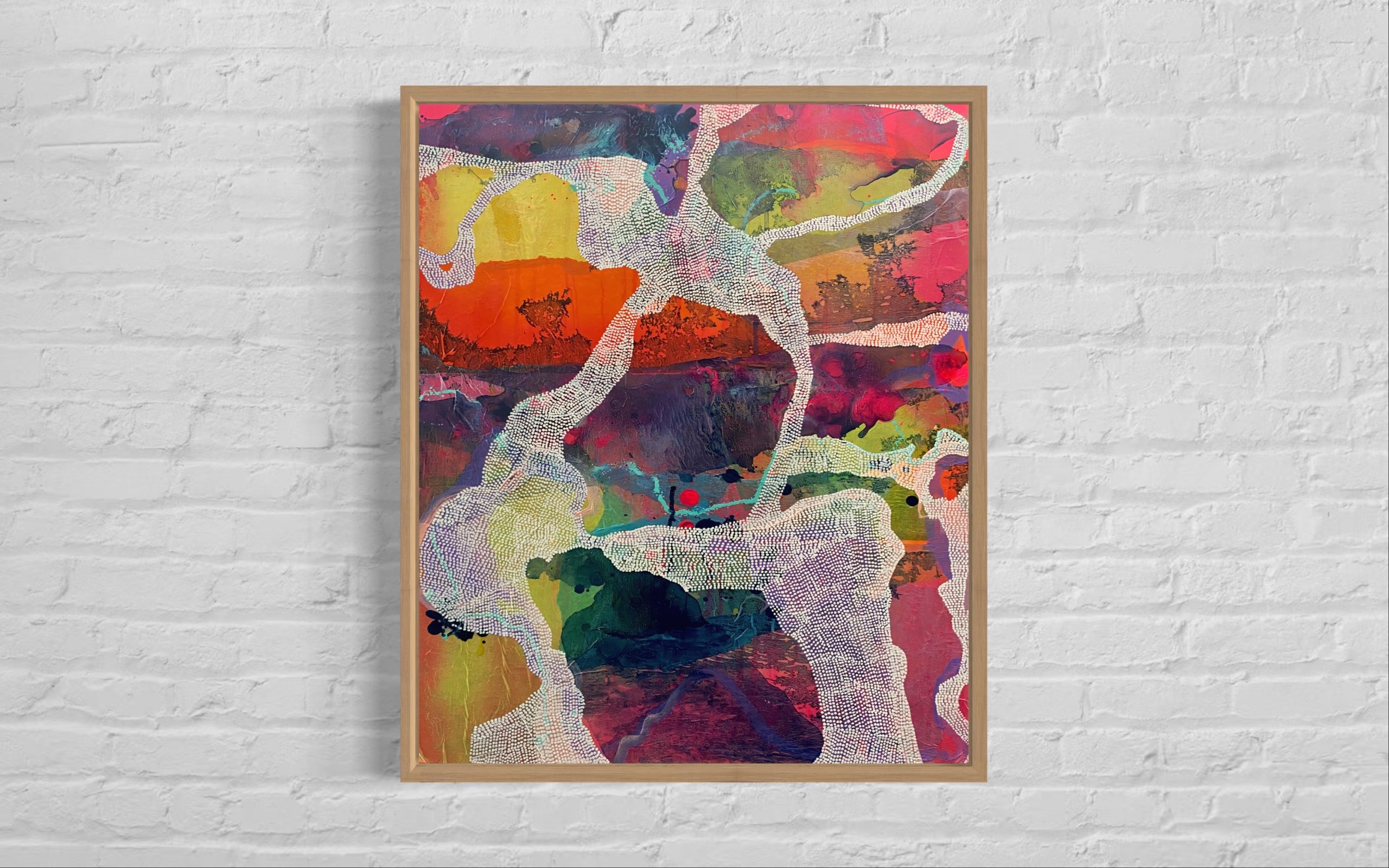 Mixed media on canvas ( hand dyed paper, acrylic, ink washes and glazes)