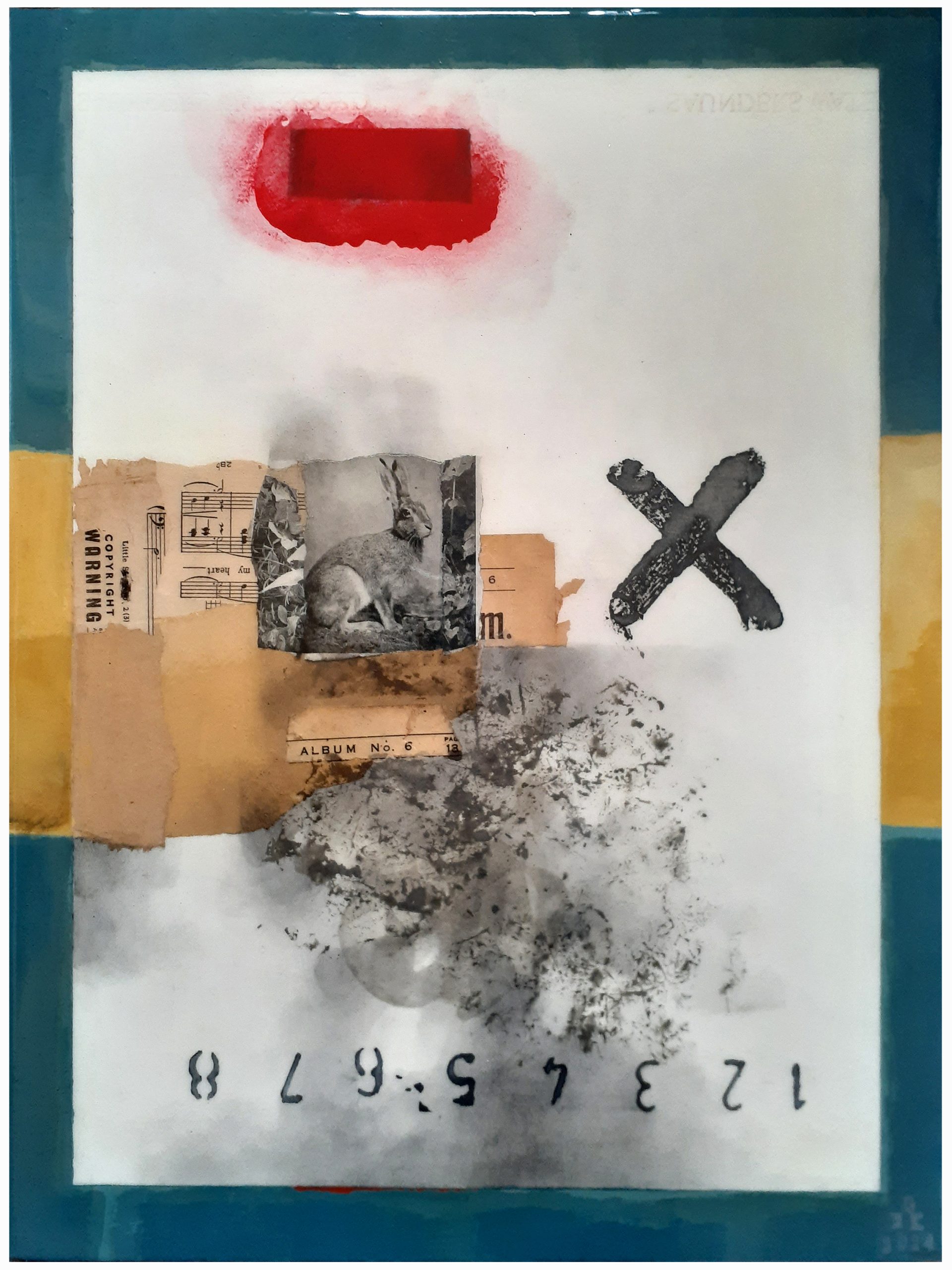 Mixed media on paper on board