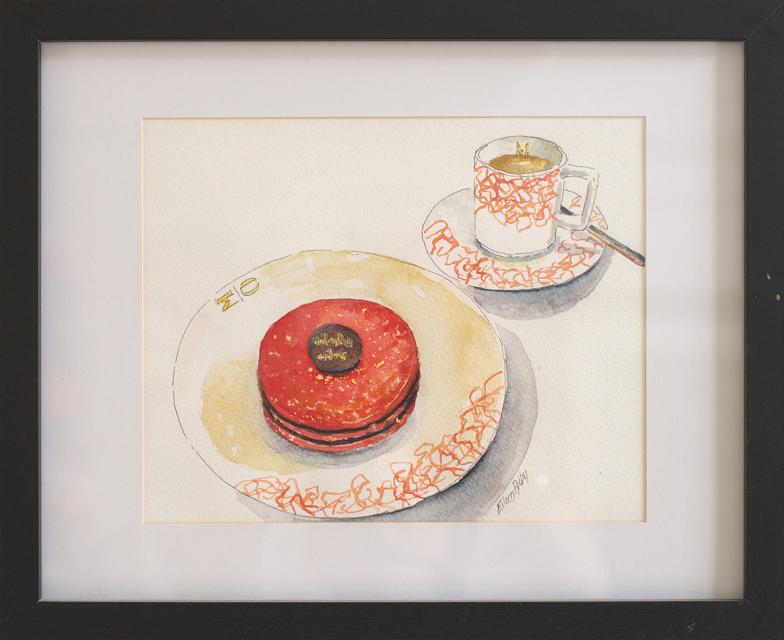 A framed watercolour, ‘Macaron in Paris‘ – by Eileen Scrymgeour Rigby