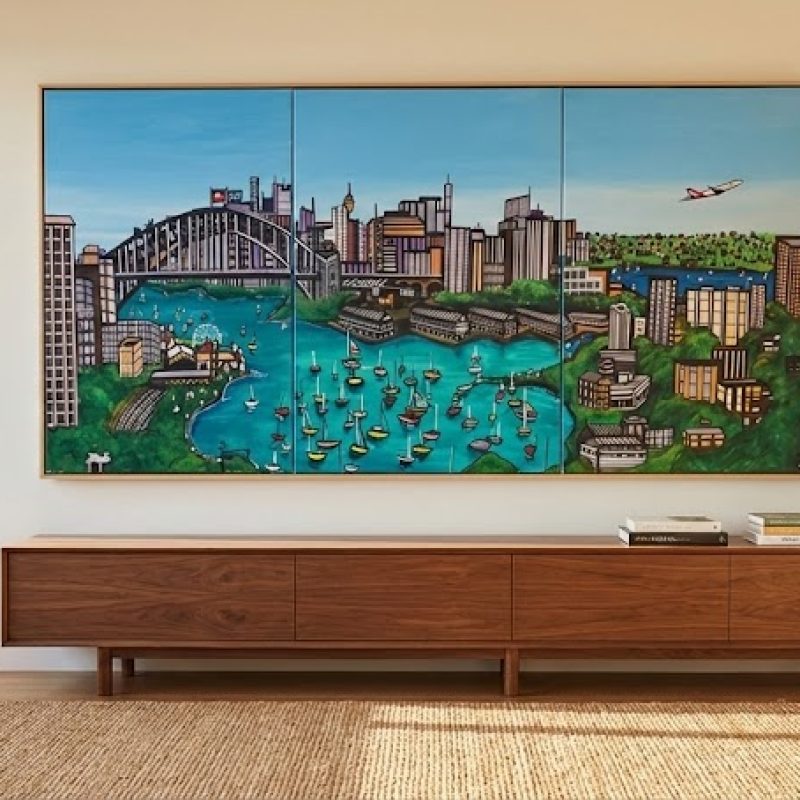 The Artwork comes Framed in Black and ready to hang, and it is mounted under a clear acrylic sheet.