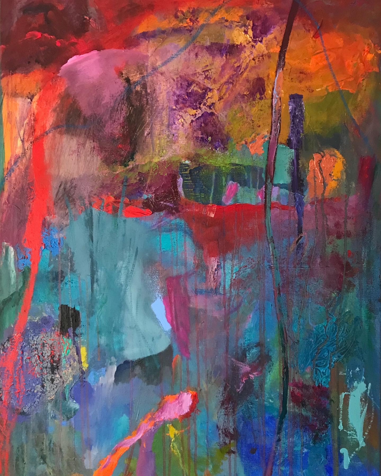 I worked a long time with this painting until it finally spoke to me revealing my version of a joyous vision with the colour relationships I weaved and cajoled with passion.