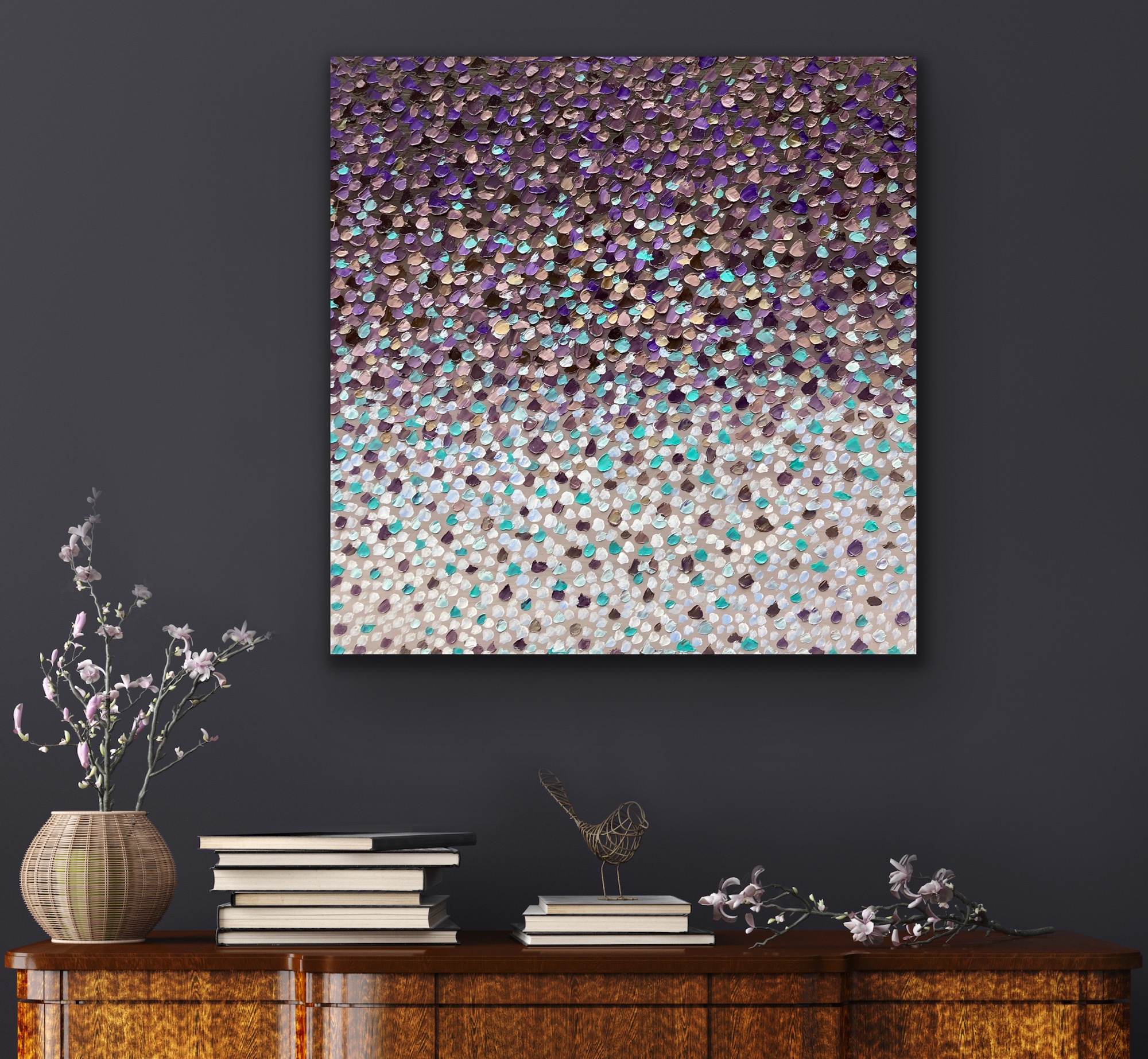 Magical Nights a beautiful painting with weeping petals against the dark sky with warm and cool colours painted in thick oil paints with a pallet knife to capture the richness of colours and and give a lot of depth to the painting .Hope this work makes the viewer feel very peaceful and tranquil. This painting is signed and dated 2020 at the back of the painting and comes with a certificate of Authenticity.