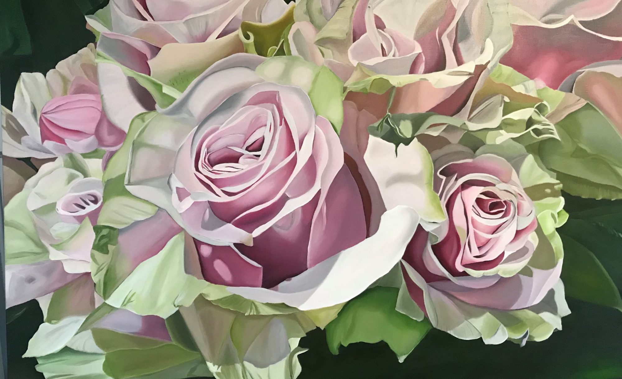 Magnificence is an original, large oil painting on stretched, deep edge linen. My inspiration for this painting is the magnificent resilience of roses to bloom with such beauty from harsh conditions.