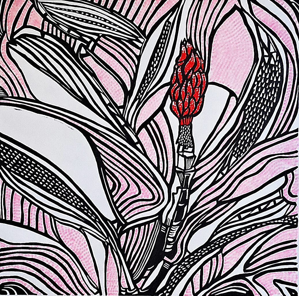 Rooted in rhythm, this linoprint captures the quiet force that flows beneath nature’s surface — a living pulse that binds growth, form, and transformation. Through the play of black and white, order and movement, the work echoes the exhibition’s essence: the vital beat that connects chaos with harmony, stillness with vibration.
