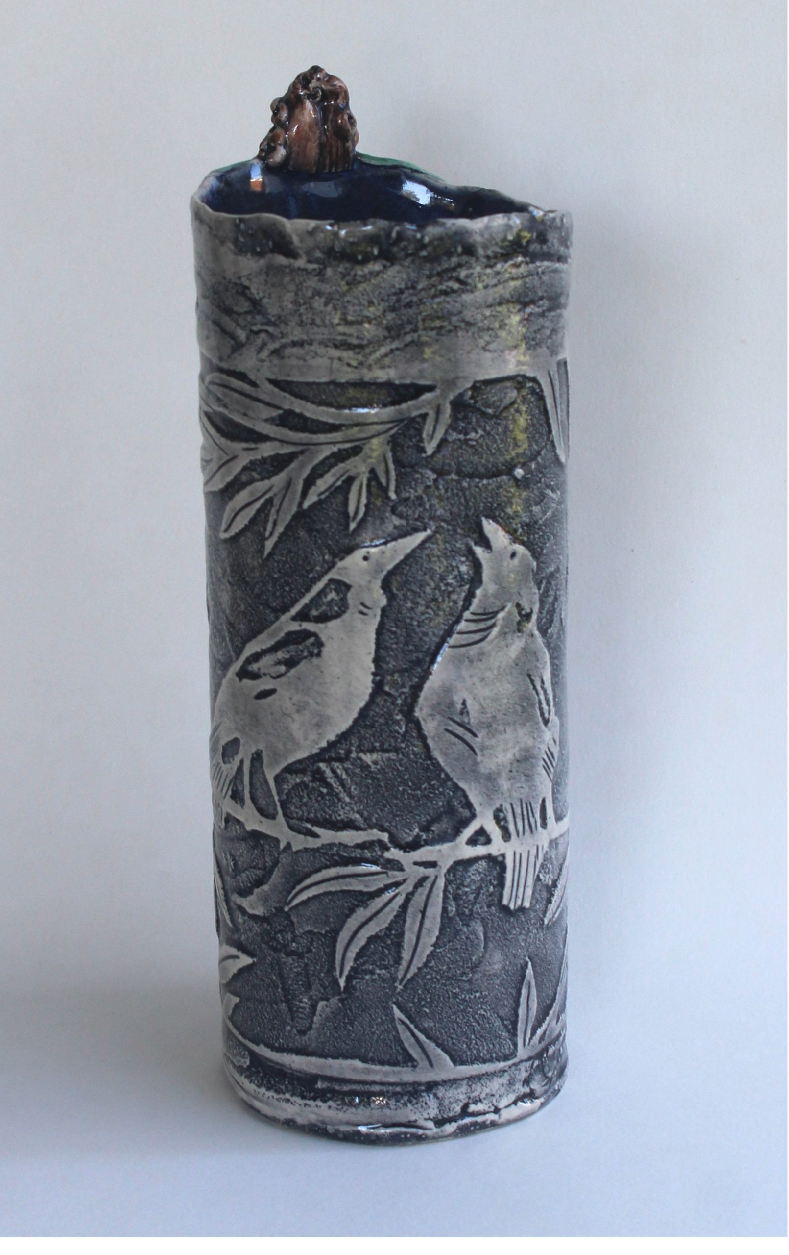 Magpie Chorus is an original, handbuilt ceramic sculptural vase.