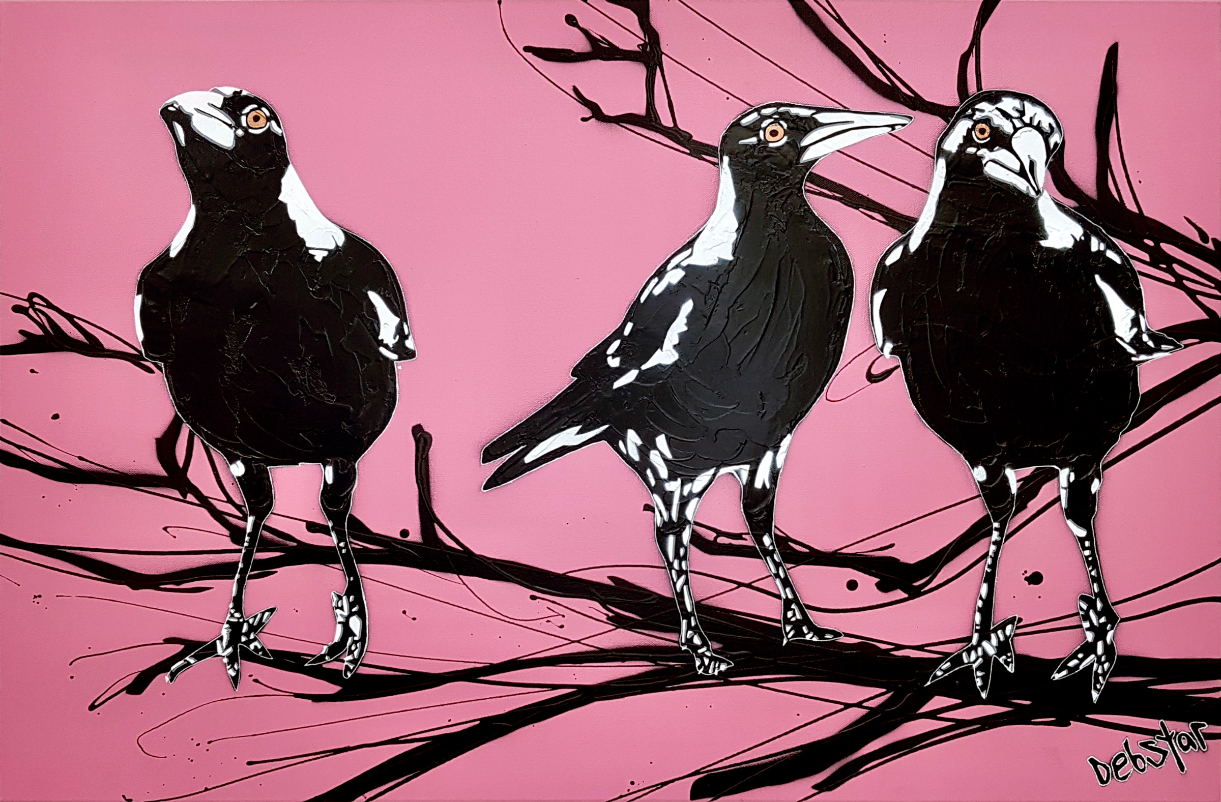 Magpie Street Birds! Pink by Deborah Lang – Add a pop of colour to your home with these Cheeky! Australian locals ‘Magpie Street Birds! Pink’.