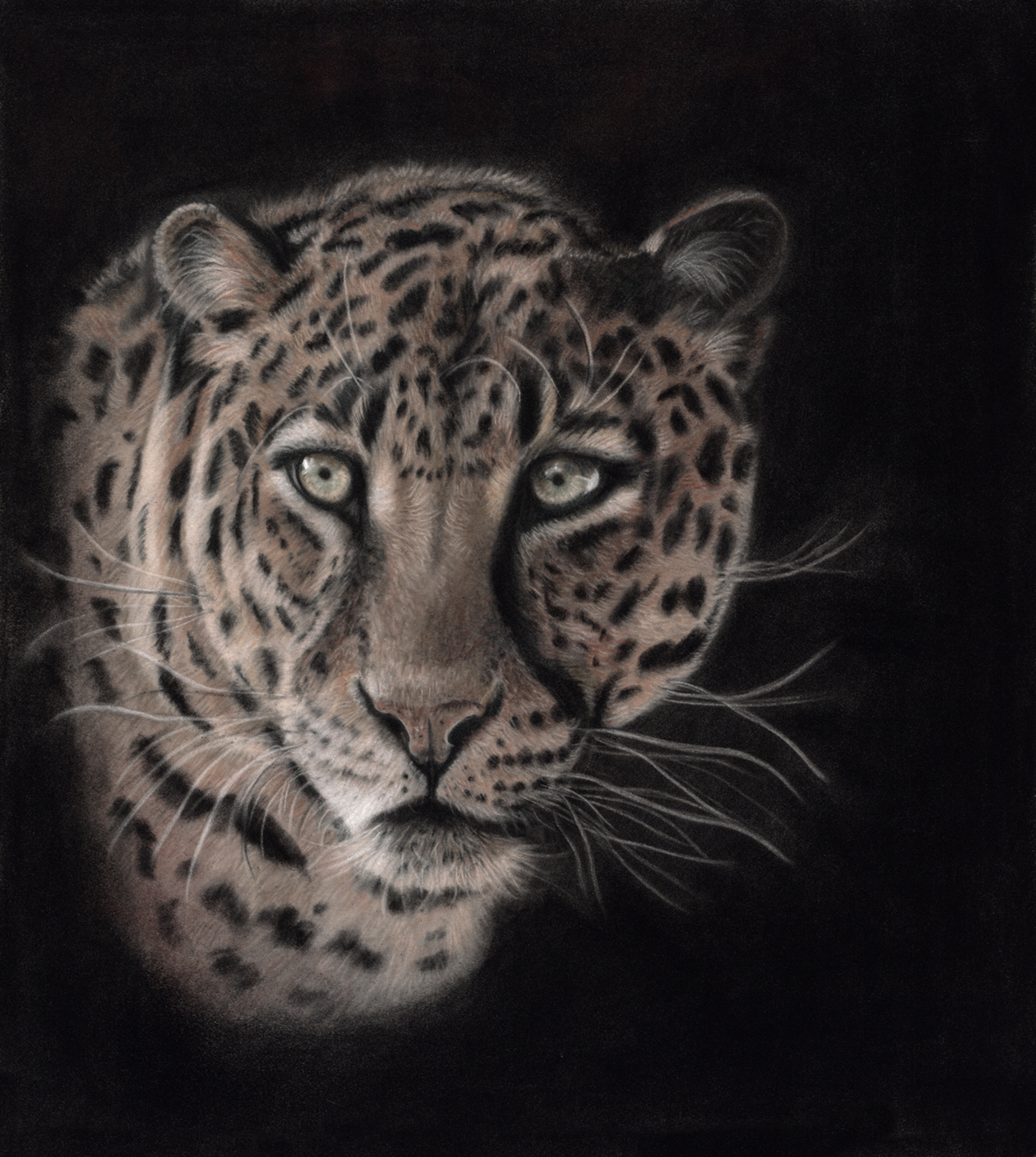 The original for this beautiful endangered big cat was painted in pastel on velour, giving it a “soft” effect for the fur.