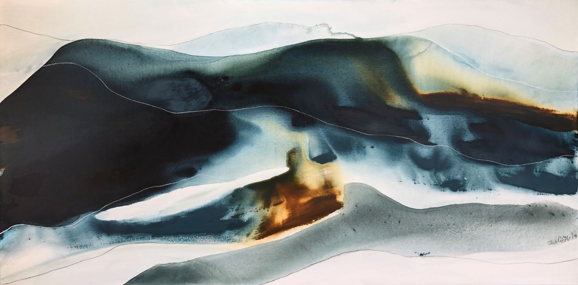 Mahia 1 is inspired by the light, the colours and the natural beauty of the Noosa region of Australia. “What I love most about Noosa is the interplay of light. From the oceans to the clouds, to the river estuaries and the hinterland, this canvas unfolds before me every day and finds expression in my paintings”.