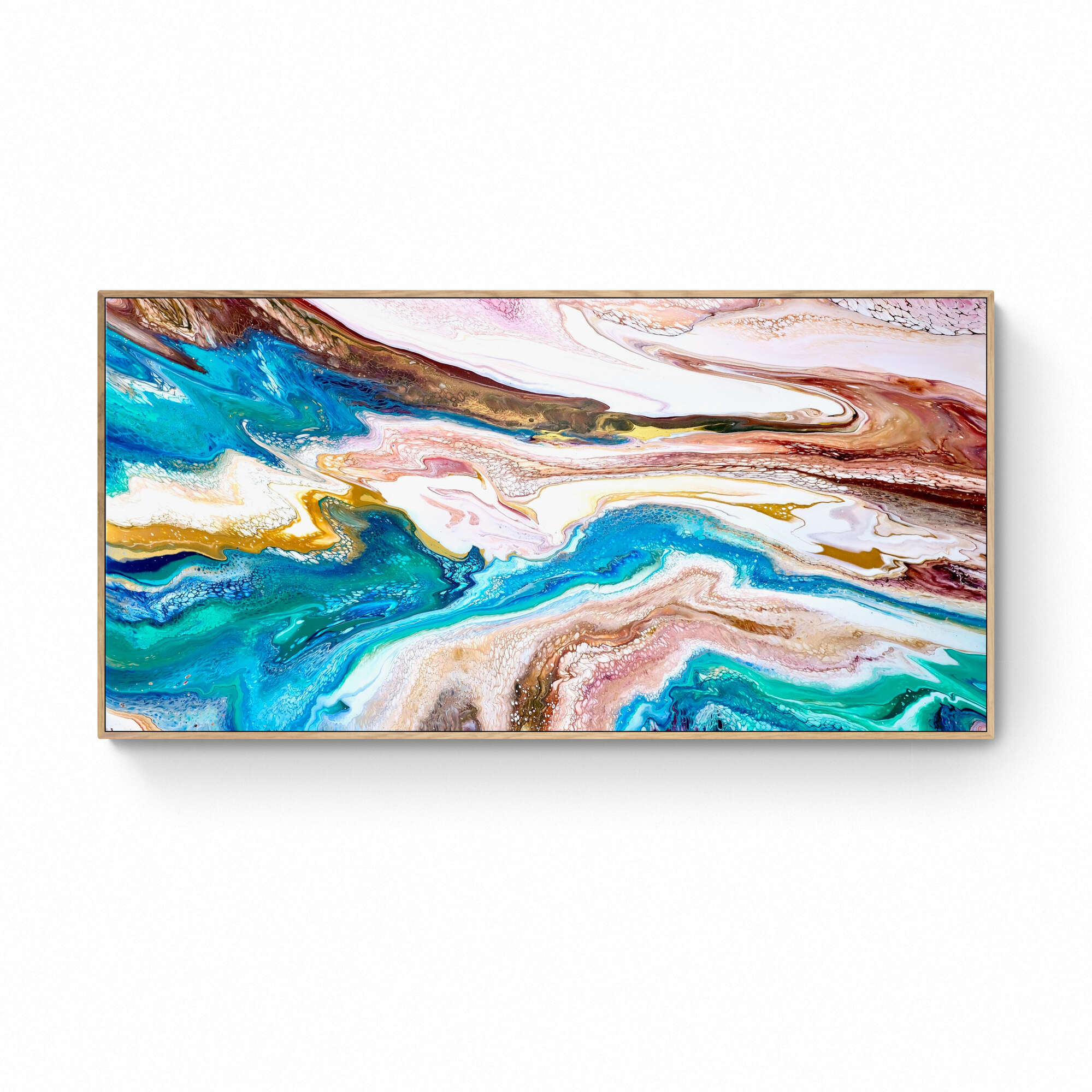 Introducing “Majestic Earth” by artist Thanh Lyons. This beautiful piece showcases an exquisite blend of the Australian Outback’s awe-inspiring beauty and the tranquil elements of the ocean and sand. Its distinct composition will instantly captivate anyone who lays eyes on it, making it a statement piece for any home or office.