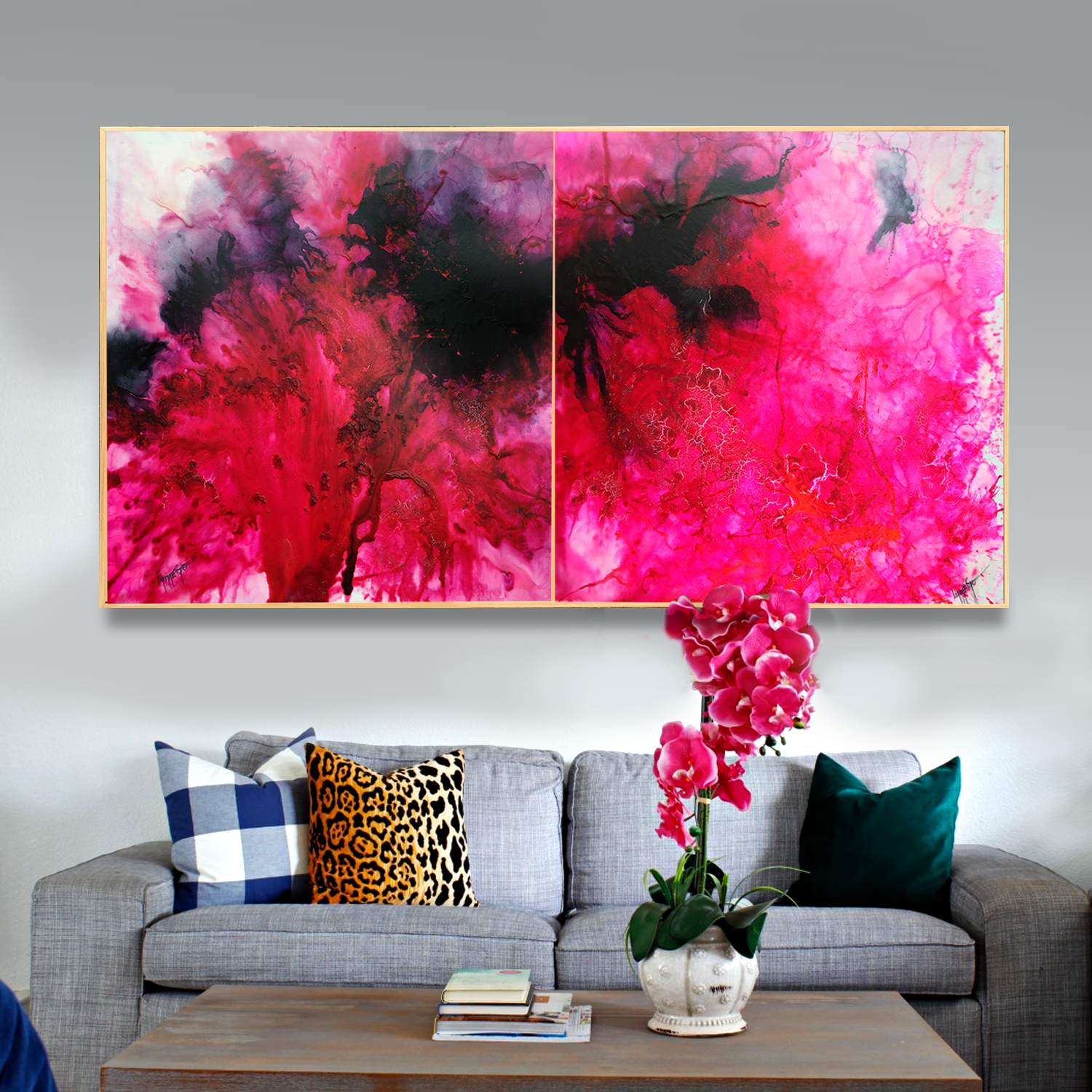 A bold, bright pink diptych that will give a powerful impact in any setting and decor.