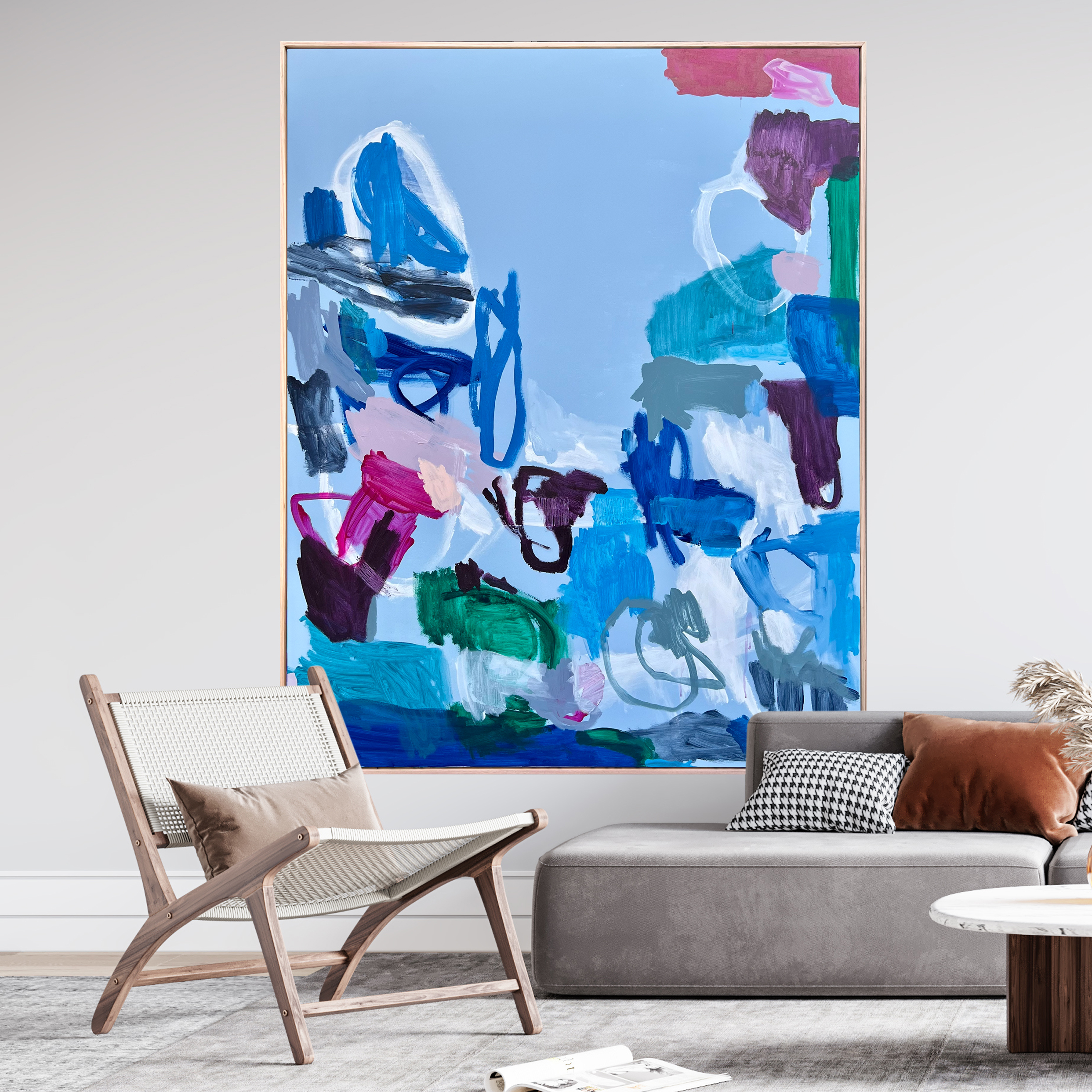 Drawing inspiration from nature, this piece was created to capture the energy and form of the hidden Australian coral reefs. The organic and free flowing shapes and colour combinations work together to build a captivating abstraction of an immersed world.
