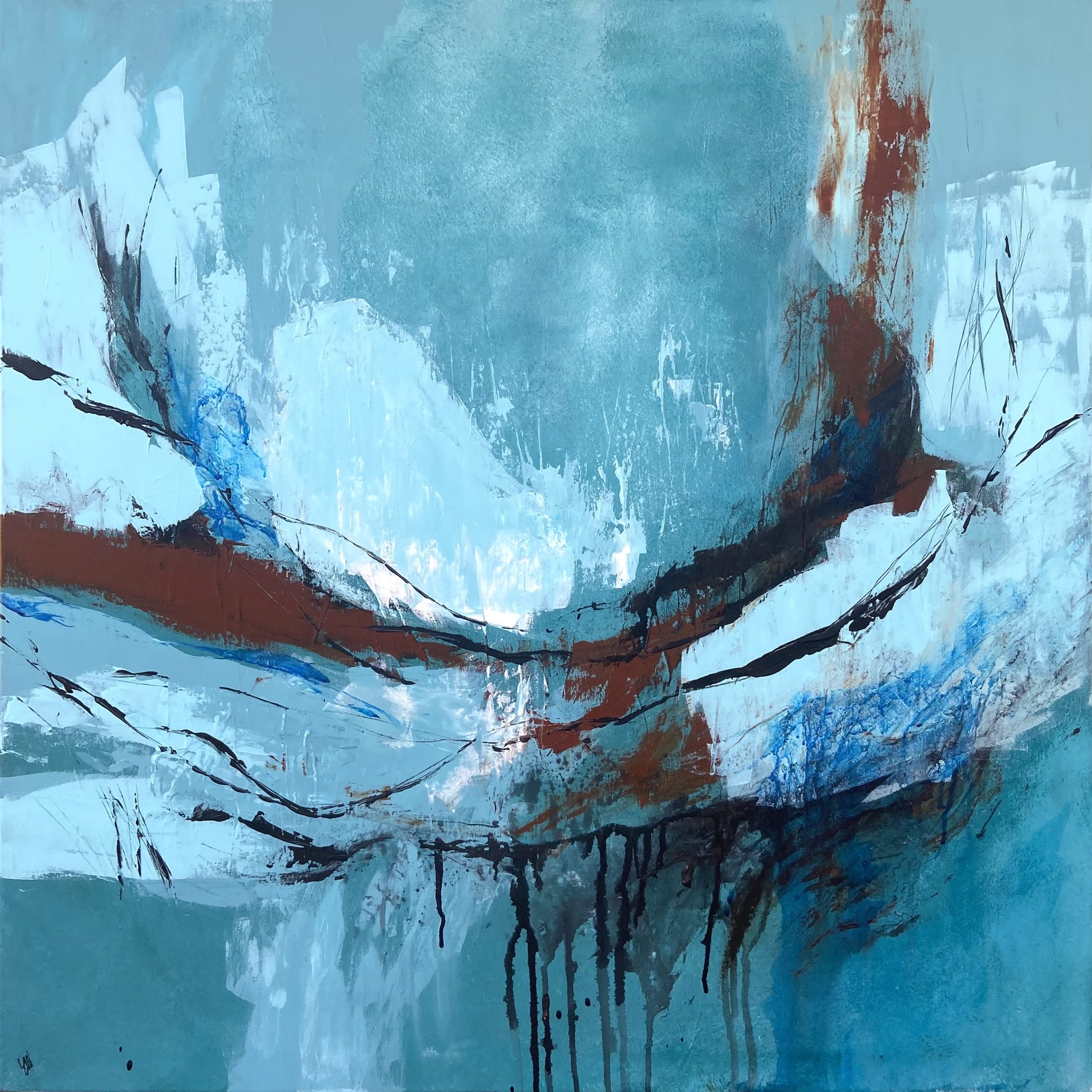 Making Connections by Carrie Welsh is a beautiful abstract artwork. Acrylic and ink on canvas, ready to hang. Frame not included. 91.4 x 91.4 x 2cm.