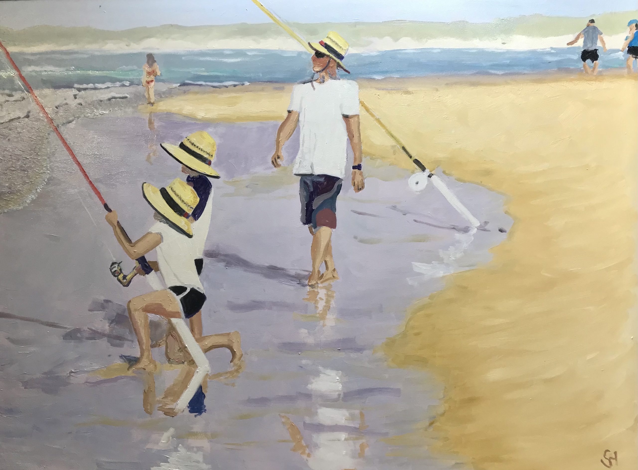 I often take my dog walking on Greenhills beach which is a dog beach during early mornings and later afternoons. during a walk I noticed a father and two sons beach fishing.