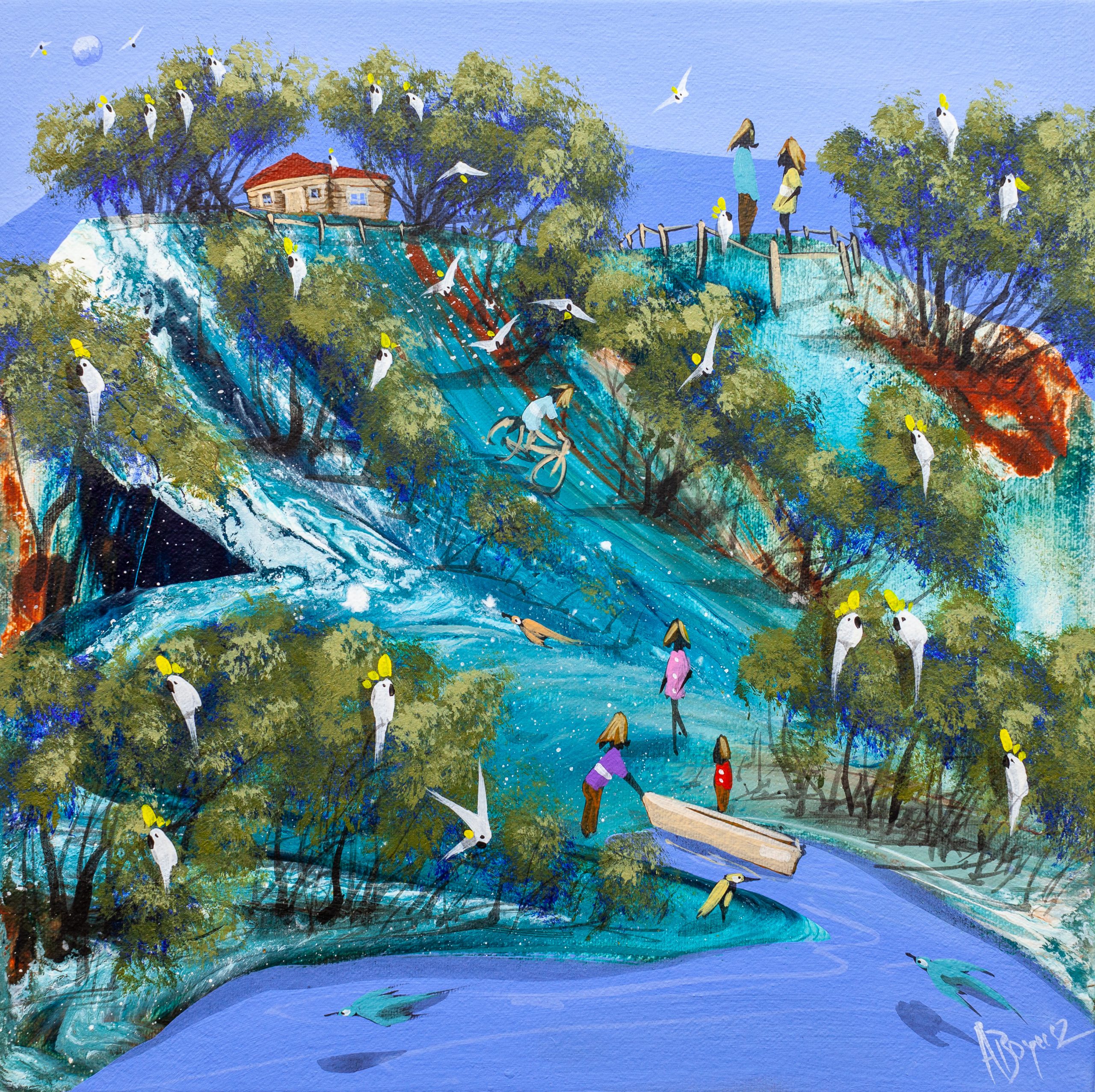 This series is a culmination of almost 25 years of painting. It draws inspiration from many sources, including my time growing up in Townsville, Nth Queensland, my father’s artwork, my wife and two children and Zen Buddhism. These images do not represent any particular place or time. I want them to have a universal appeal and ambiguity that allows viewers to write their own story into the image.