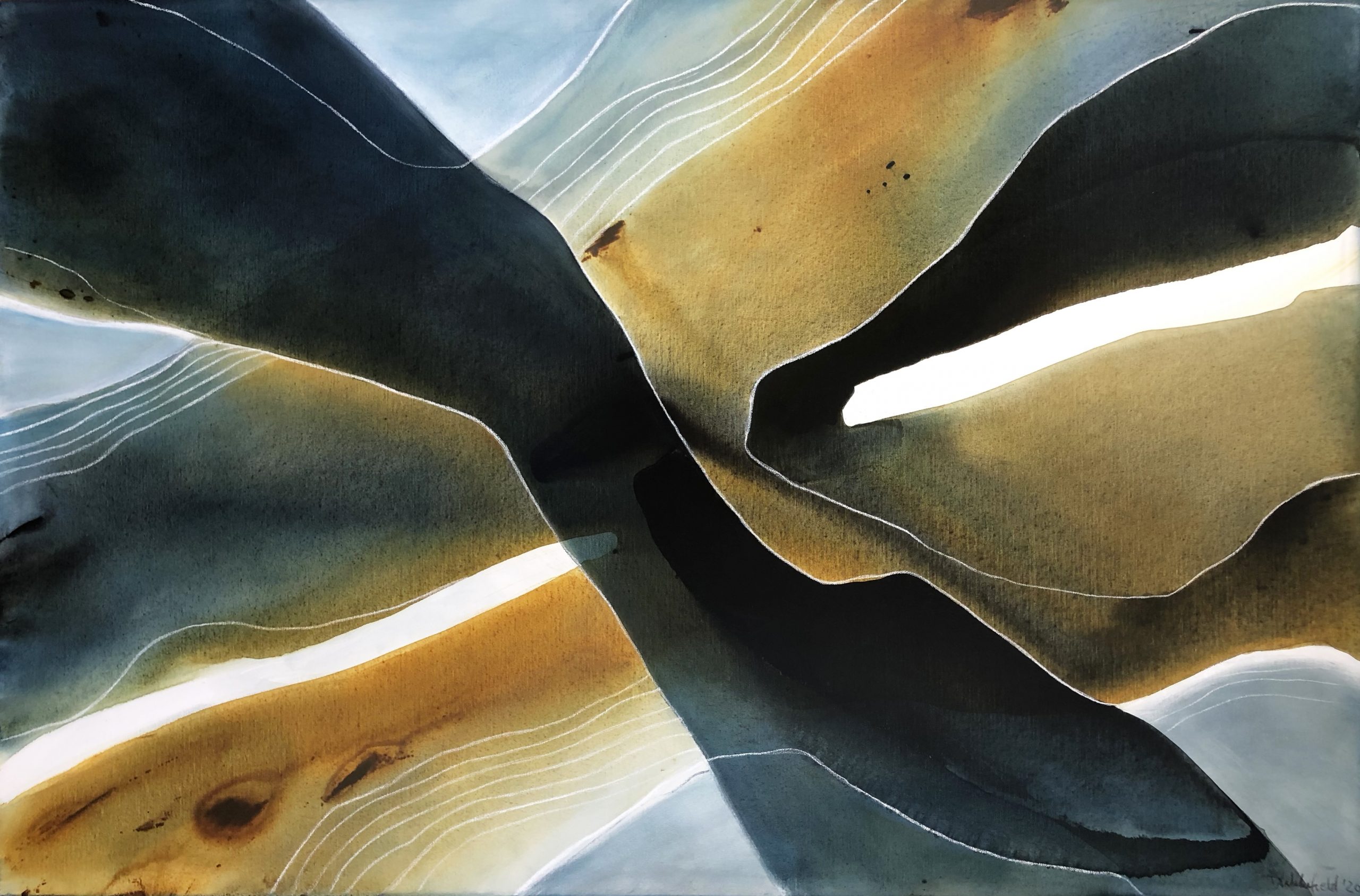 Mandingal Bay by Dinah Wakefield is inspired by the light, the colours and the natural beauty of the Noosa region of Australia. “What I love most about Noosa is the interplay of light. From the oceans to the clouds, to the river estuaries and the hinterland, this canvas unfolds before me every day and finds expression in my paintings”.