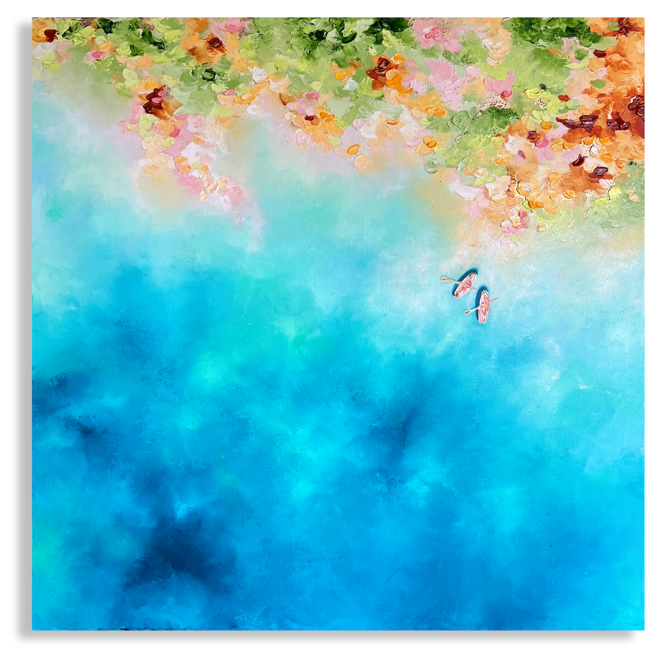 Some of my canvases are ordered with a float frame, usually the most popular is a Tasmanian oak frame. If you prefer to frame the piece once the painting is finished, I can assist you in organising a custom frame or you can choose to arrange framing yourself.