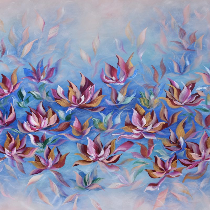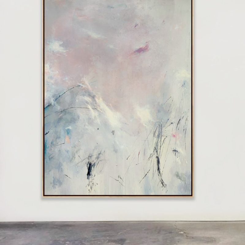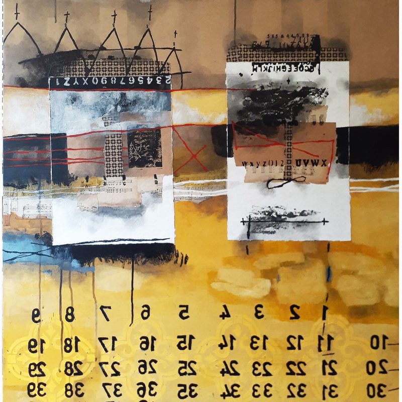 Acrylic & mixed media artwork presented on canvas stretched over dibond panel on pine framing.