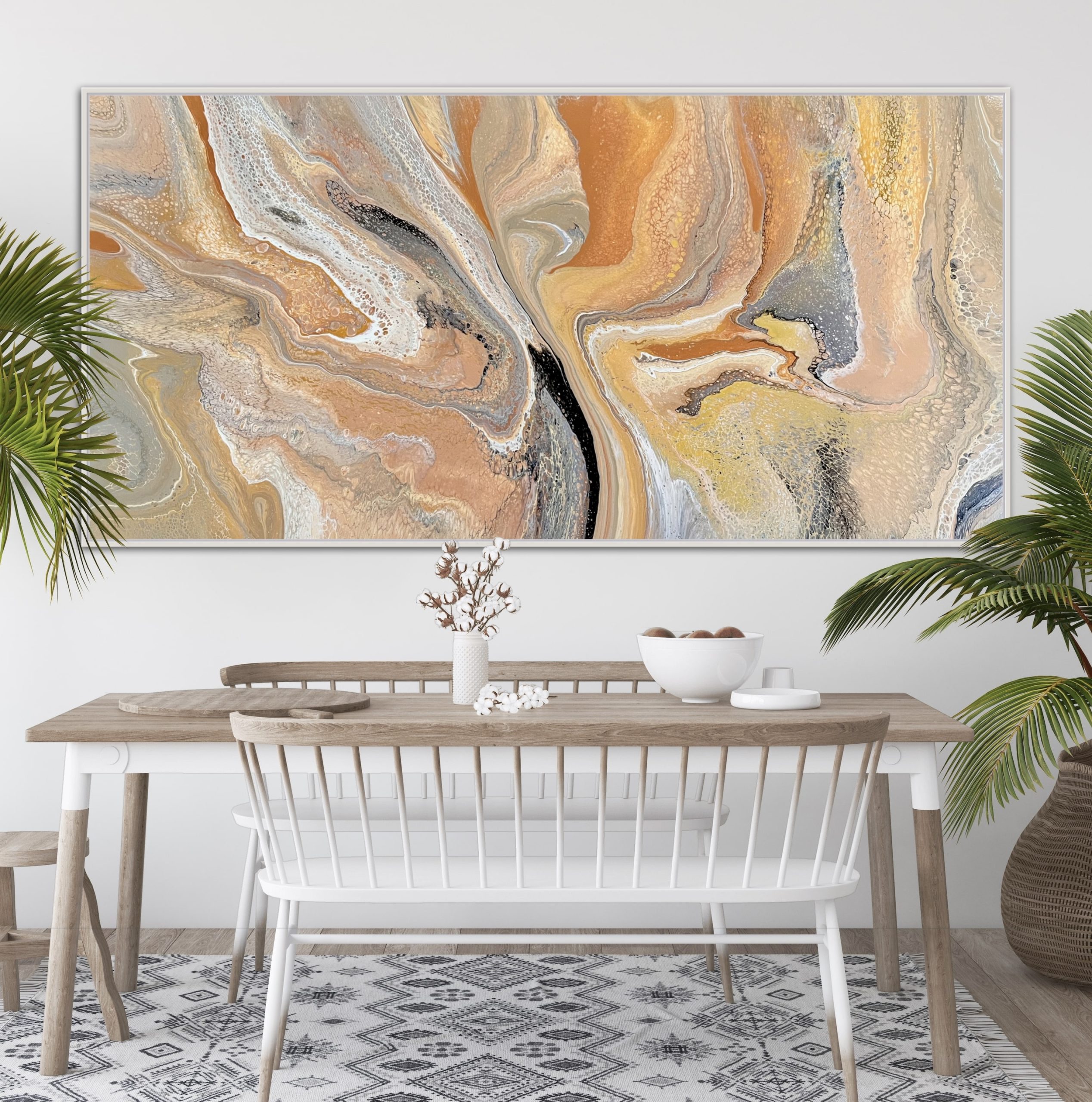 ‘In situ’ photos have been included to help with visualisation of the artwork in your home. In situ photos provided were created using the ArtStage app and may not be perfectly to scale. This being said, every effort has been made to represent the size of the art accurately but please read the dimensions of the artwork to ensure it fits your space perfectly. Where provided, photos of framed art are for illustrative purposes only.