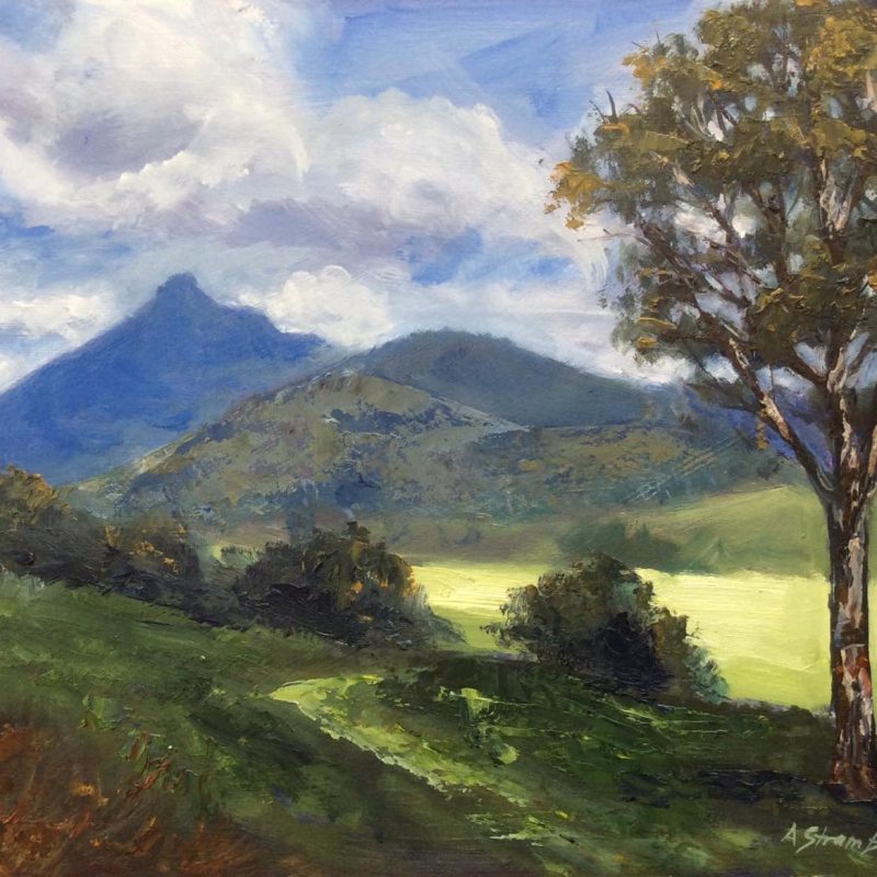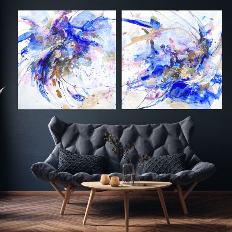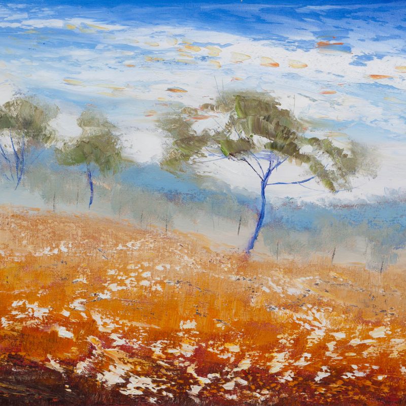This piece is on stretched canvas and 2 coats of high gloss varnish have also been applied to protect the artwork. The gloss finish really makes the colours pop and gives the work a glassy finish. It has a wire at the back with painted edges so it is ready for your walls, or you may wish to add a frame directly through Art Lovers during purchase.