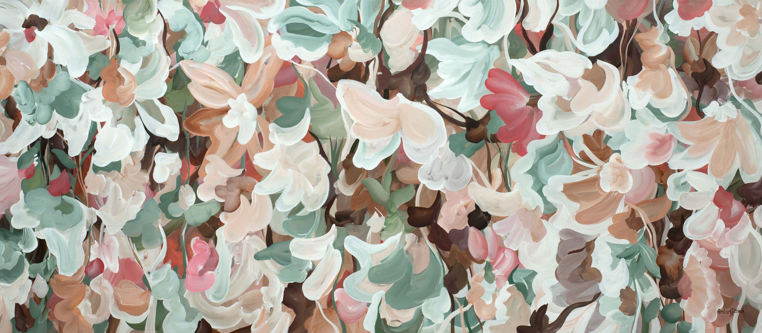 ‘Maternal Blooms’. Created with a softer, nurturing colour palette to bring warmth and love into your space. Gorgeous pastel pinks, browns and sage tones that depict natures beauty in a simple and organic form. This painting is a reminder to slow down and enjoy the small things, a reminder to connect with the people closest to us and to be present for them. A daily reminder that will bring tranquility and wellness into our busy lives.
