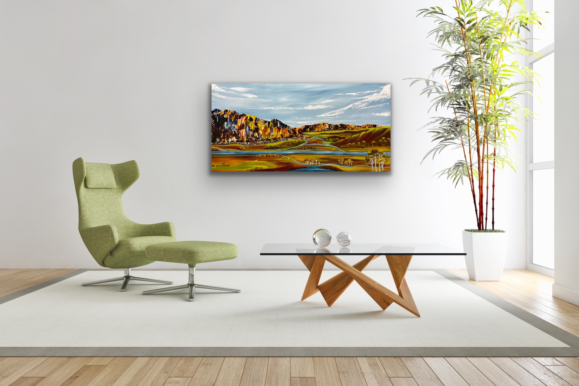 I love to create colourful rocky cliff faces with the lovely earthy colours & then our beautiful countryside in complete contrast green rolling pastures and cooling rivers running through our rich earth part of this vast Australian country we call home.
