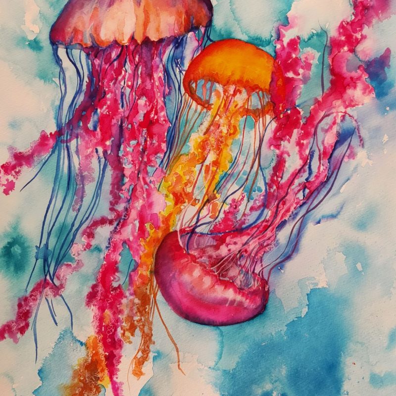 Stretched ready to hang with paint edges wrap around frame.