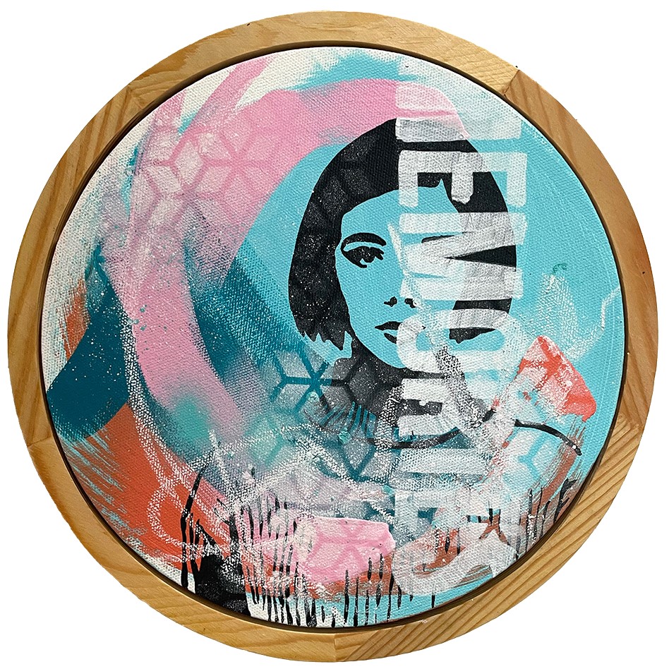 Mixed media – acrylic spray paint and ink on canvas
