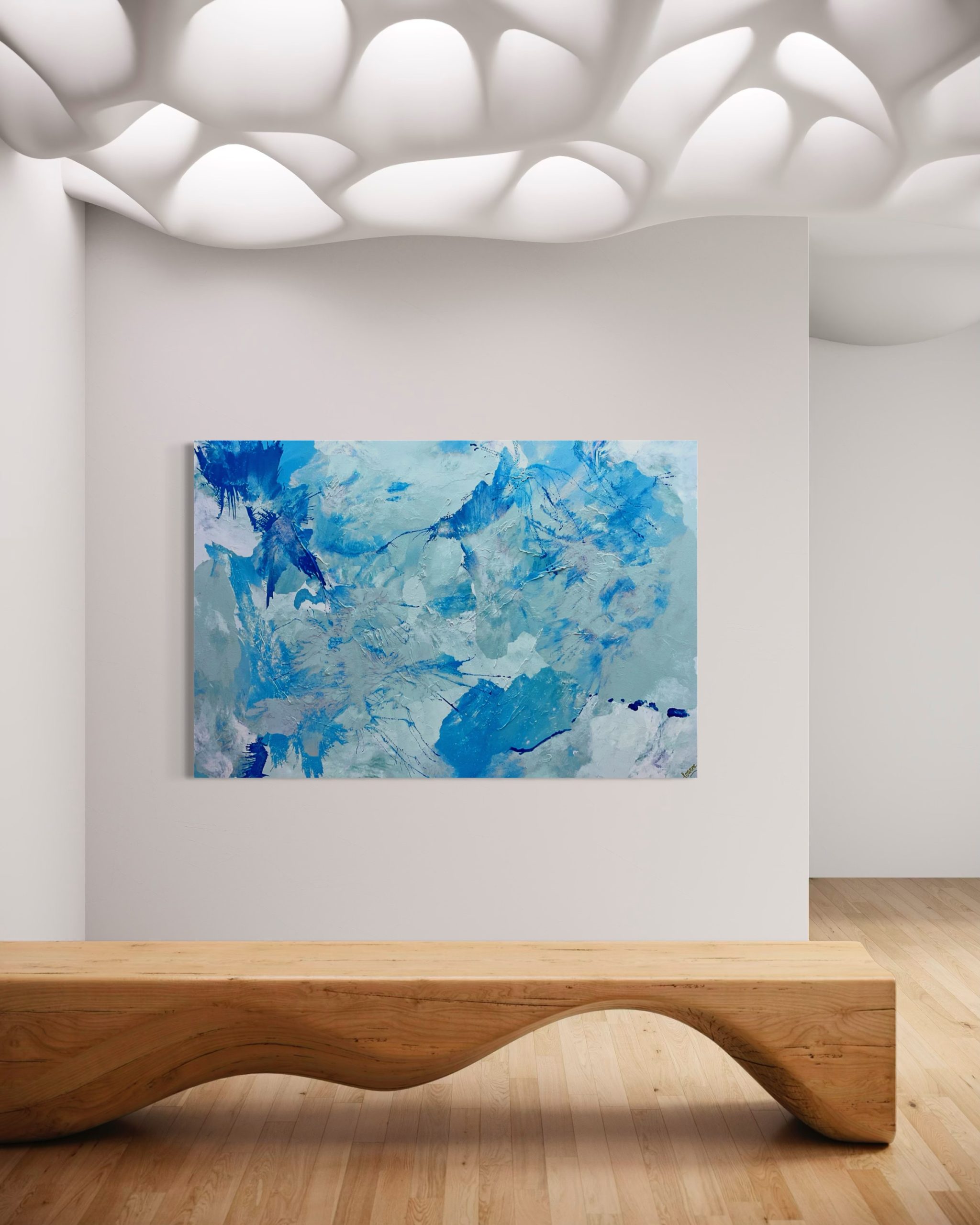 Merging Phthalo Blue- by Australian Artist Joanne Daniel – (182.8 cm x 121.8 cm) Abstract Painting.