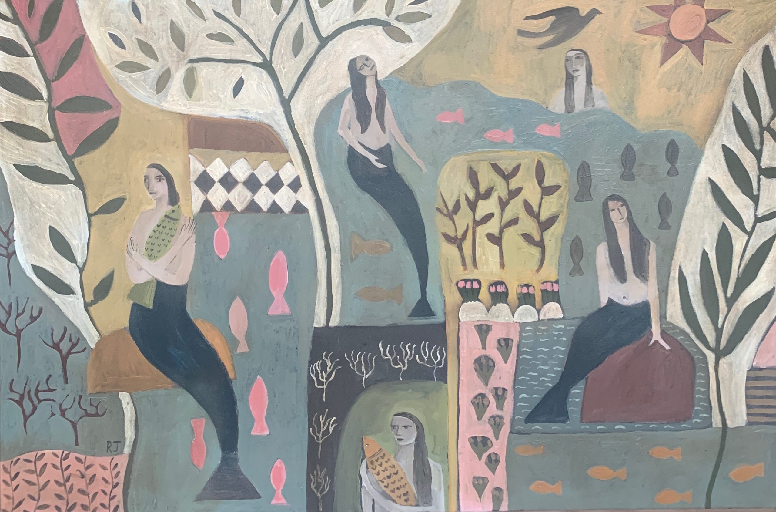 I hope that my art captures something true about the world — the beauty of the ordinary, the complexity of human interaction, the intensity of an emotion. My art is largely figurative and I attempt to represent what I see and experience with a sense of appreciation and humour. My work is colourful and eye-catching and can tend towards the naive, sometimes incorporating elements of fantasy. I like my art to tell a story, to prompt the viewer to think ‘I know exactly how that feels,’ or to inspire a sense of joy, longing or nostalgia.