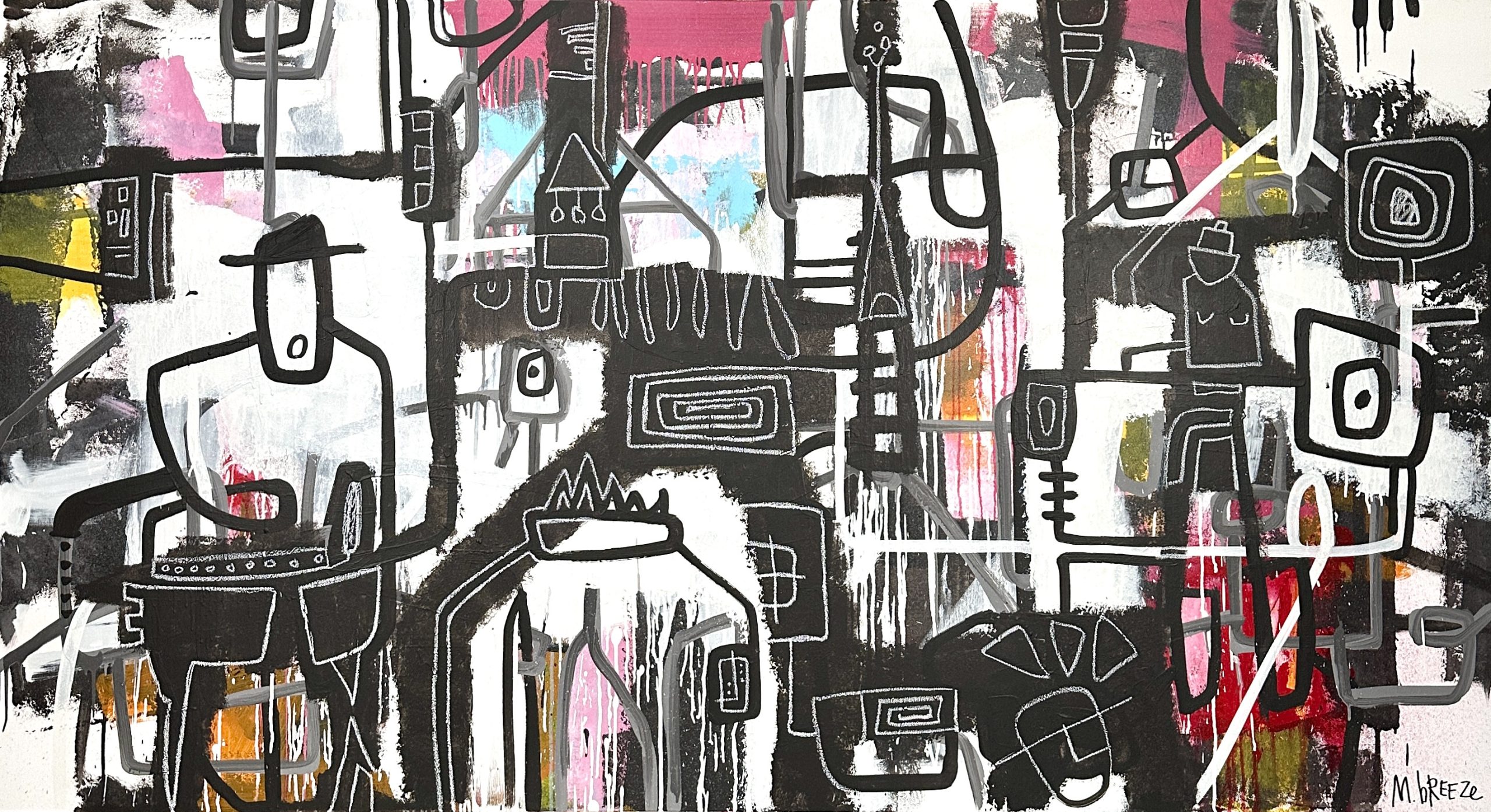 Original artwork using acrylic paints applied with trowel, hands and brush on to stretched canvas