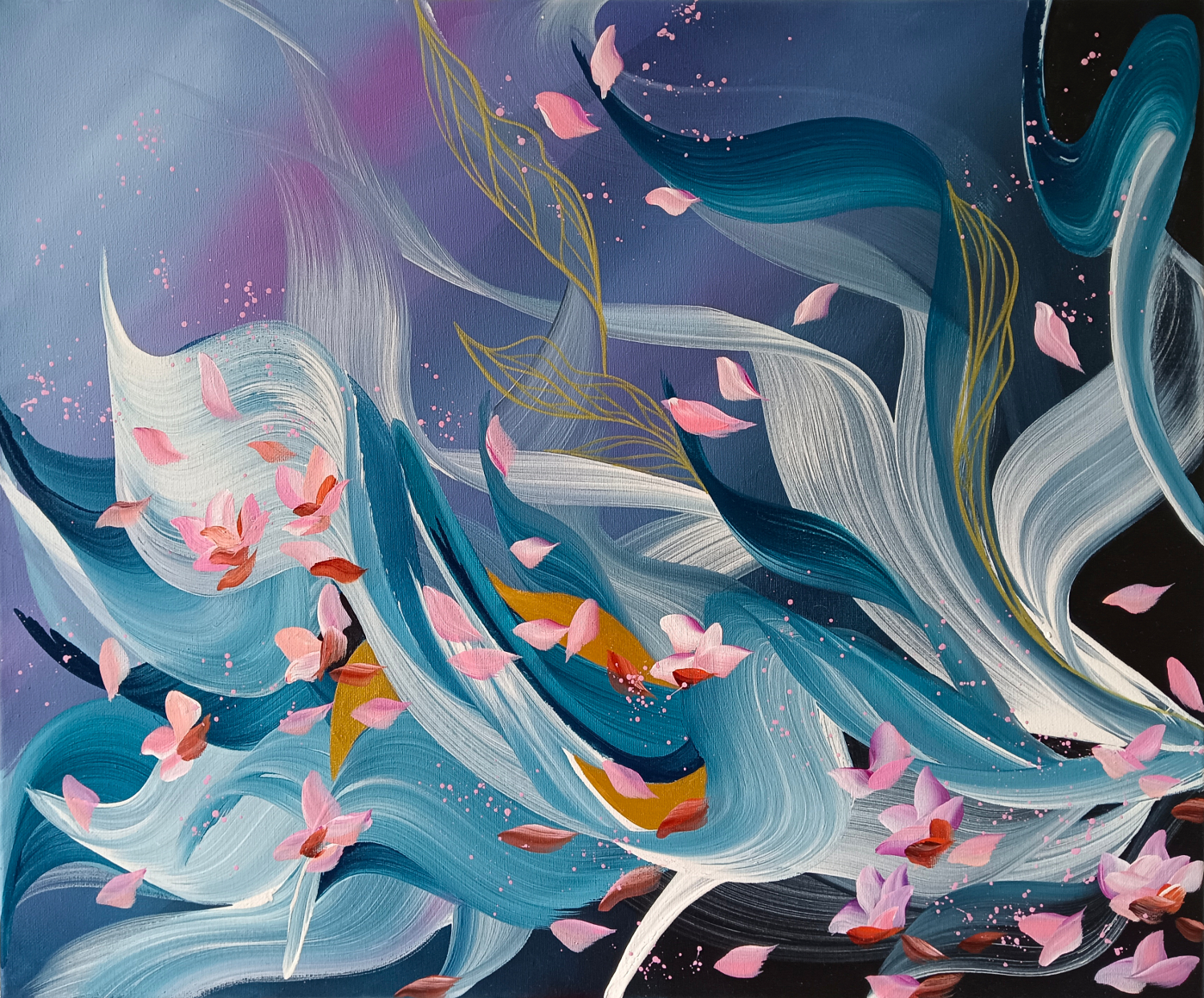 Midsummer Dream by Eva Pearl – Acrylic on gallery canvas stretched and ready to hang. Signed on the back. It has a strong wire at the back. Sides of the painting are painted as a continuation in the same colour to match the artwork so there is no need to frame. Signed with a Certificate of Authenticity.