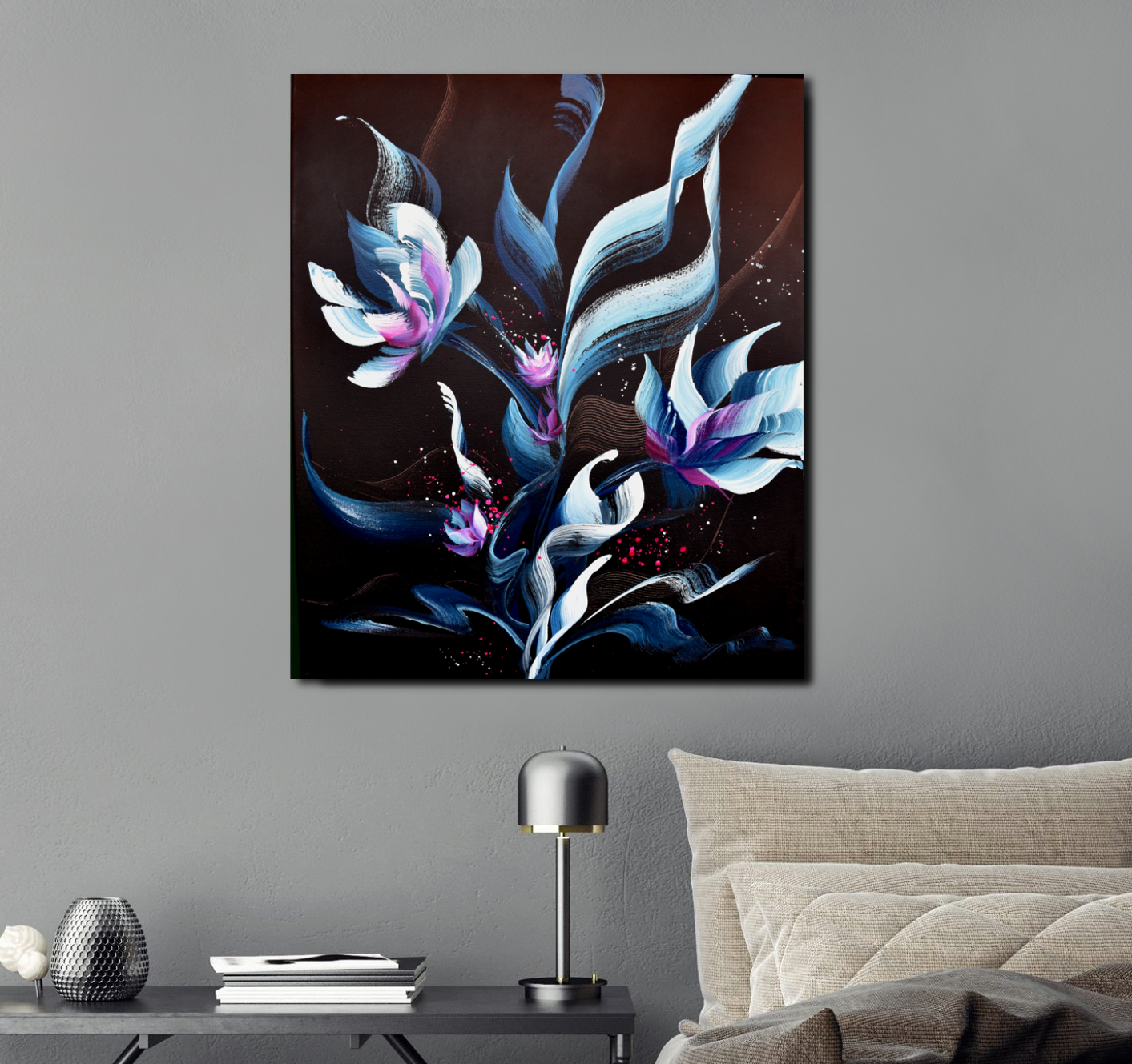 ‘In situ’ photos have been included to help with visualization of the artwork in your home. In situ photos provided may not be perfectly to scale. This being said, every effort has been made to represent the size of the art accurately but please read the dimensions of the artwork to ensure it fits your space perfectly.