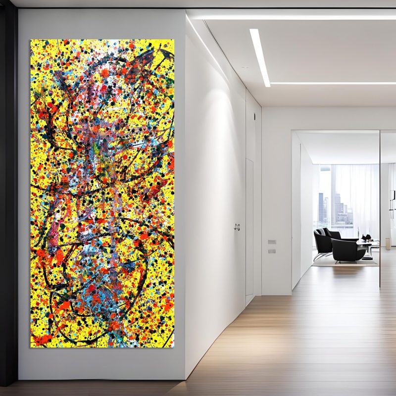 The Painting has a very textured finish created by built up layers, a visual effect mimicking the look you would see in the street where this effect is created over time on Graffiti Walls & Advertising Spaces. These imperfections are part of the overall look and feel of the finished work. Insitu examples are not to scale.