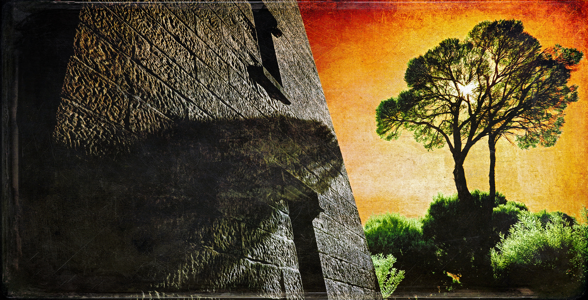 Dramatic rendition of a rising sun casting its shadow across the stone wall of Boyd Tower at Twofold Bay, southern New South Wales.