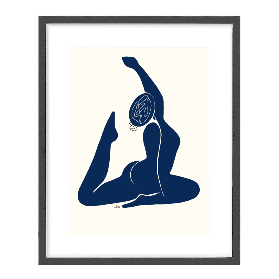 The design of this collection of art works are designed to be not only aesthetically pleasing, but to create a sense of peace and harmony in the home or office. The collection feature a number of Figures in Yoga poses or Asana’s done in an abstract style in navy blue, with white line and black line elements. The symbology behind this represents mind, body and soul.
