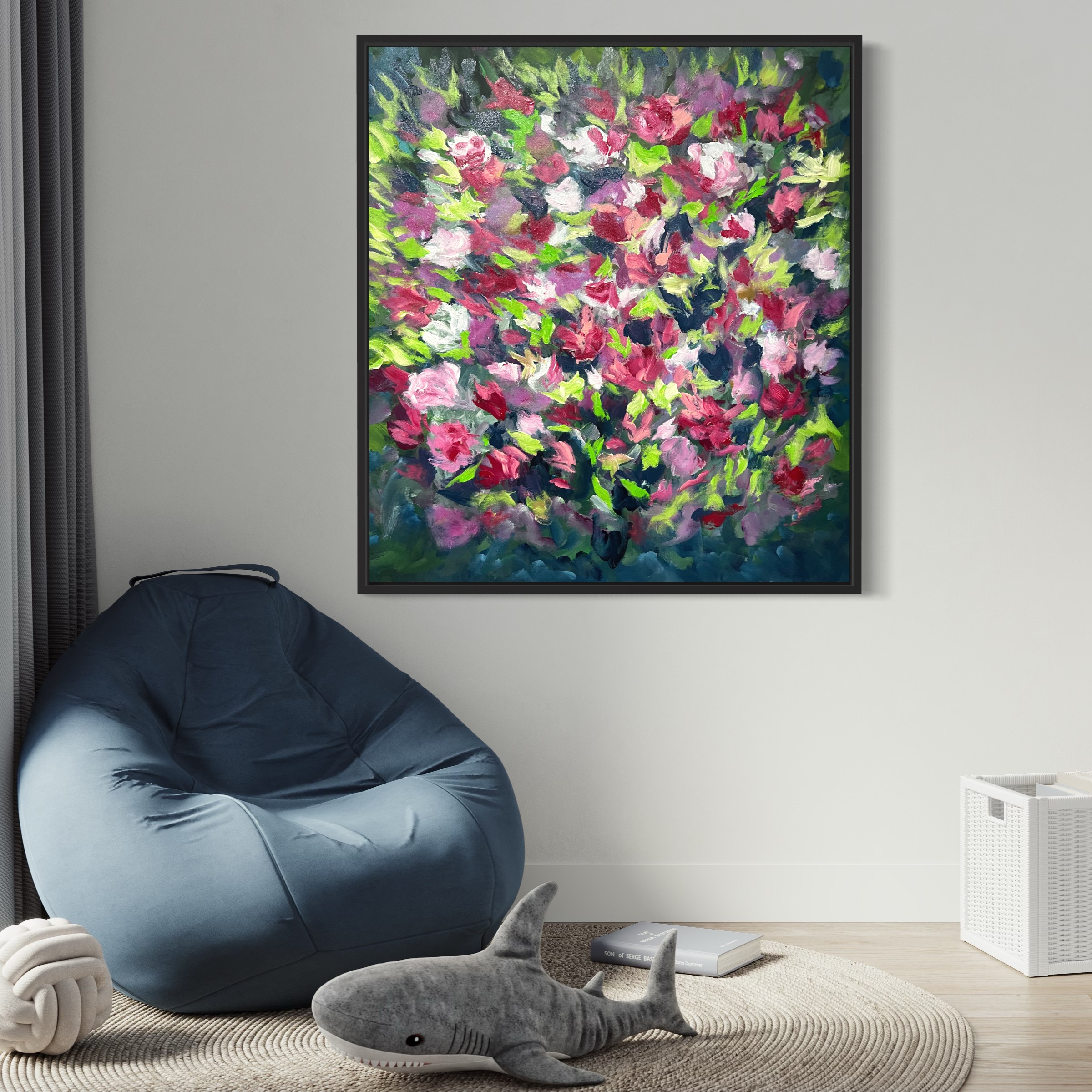 My abstract artworks especially with floral impressions from memory complete my creative journey, making it soulful and I believe that fulfilling experience can be felt in my works freely. I love painting with vibrant colors, using hands and loose strokes of brushes, palette knives and unusual tools of craft in the process of layer building. These play an amazing role in enhancing the depth of composition.