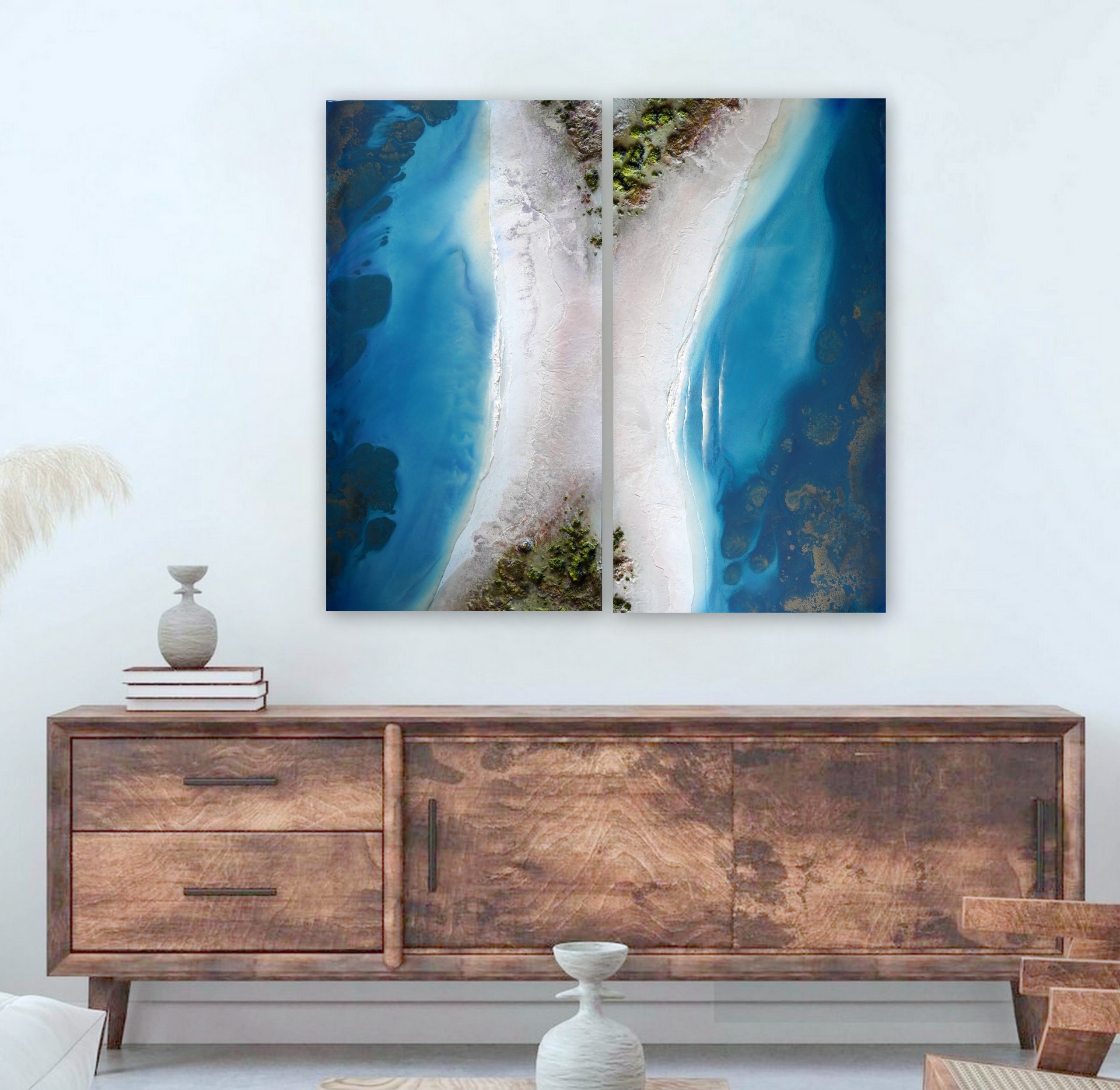 Blue Abstract Wall Art “Mirror Lagoon” by Petra Meikle
