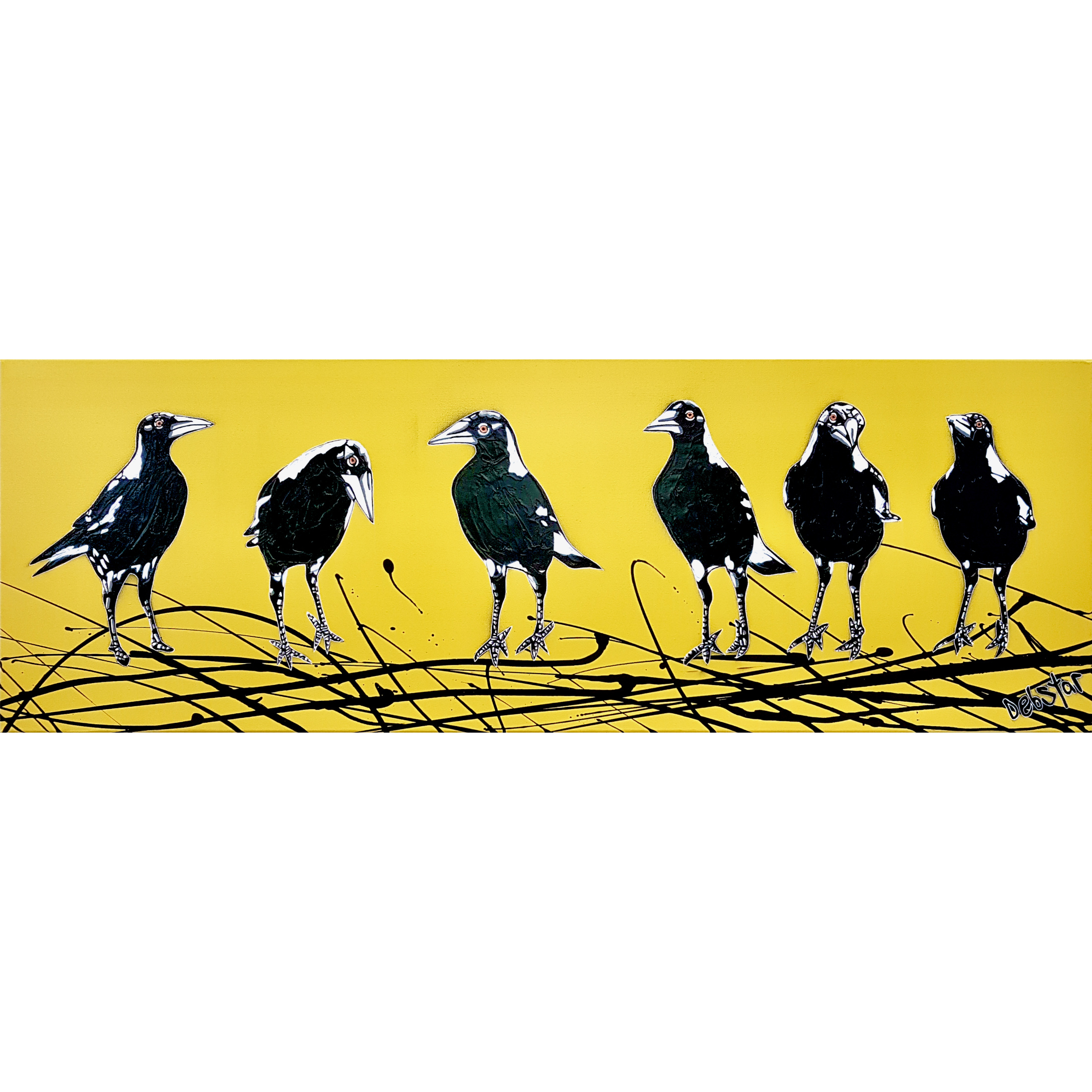 Mischief of Magpies! by Deborah Lang – Add a pop of colour to your home with these Cheeky! Australian locals āMischief of Magpies!ā.