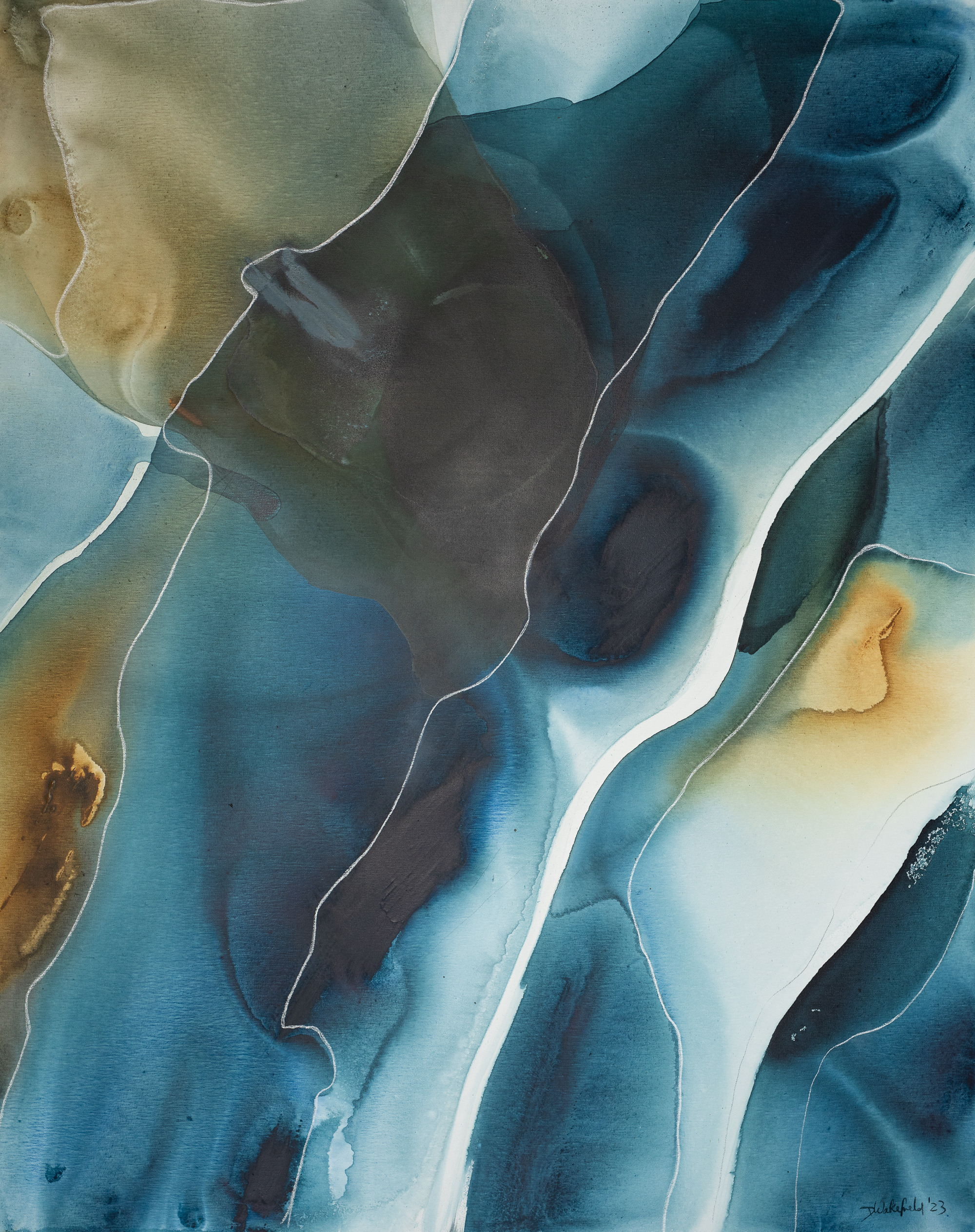 Mistral by Dinah Wakefield is inspired by the light, the colours and the natural beauty of the Noosa region of Australia. “What I love most about Noosa is the interplay of light. From the oceans to the clouds, to the river estuaries and the hinterland, this canvas unfolds before me every day and finds expression in my paintings”.