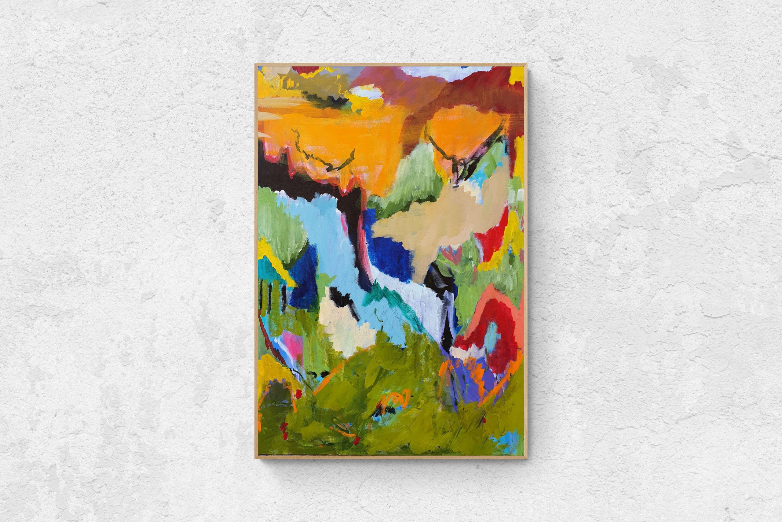 This Painting explores intuitive drawing, marks, movement, colors, texture. Creating a feeling of freedom and playfulness that evokes memories, feelings and thoughts.
