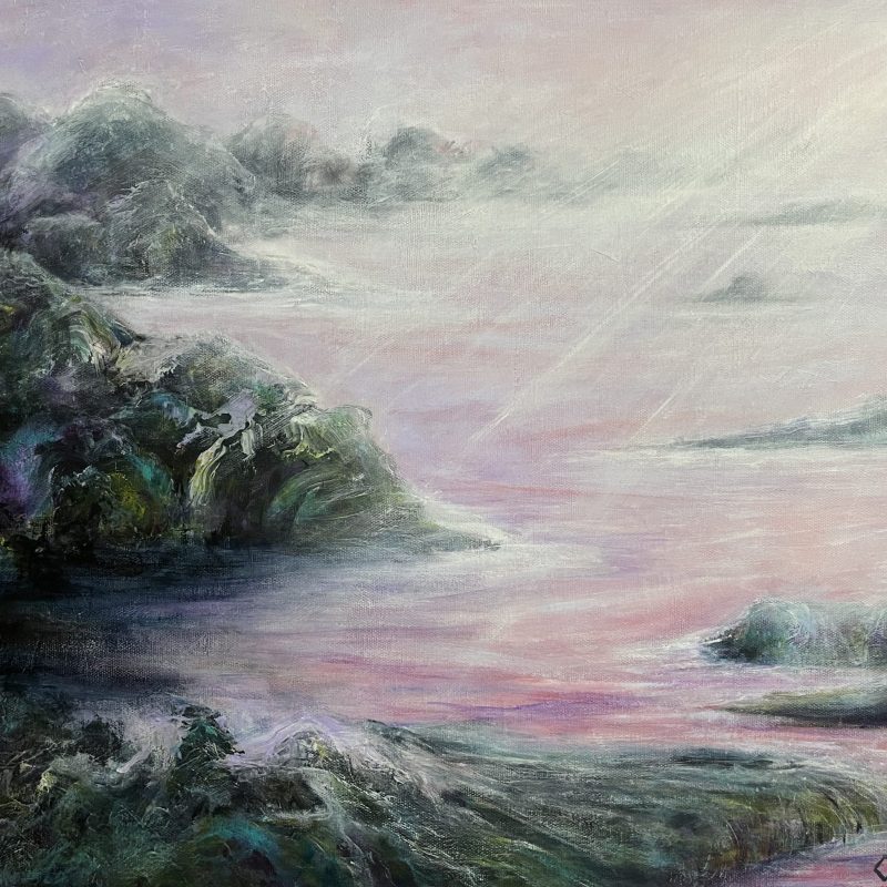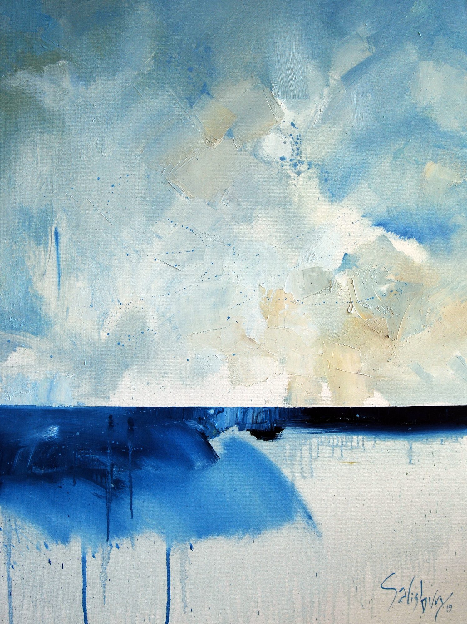 “moment in time” has energy and decision of mark making. It is produced with spontaneity. This is important to me in this work as I need to capture that moment in time. Moments that we all embrace as healing. The ocean and sky are a constant theme for me.