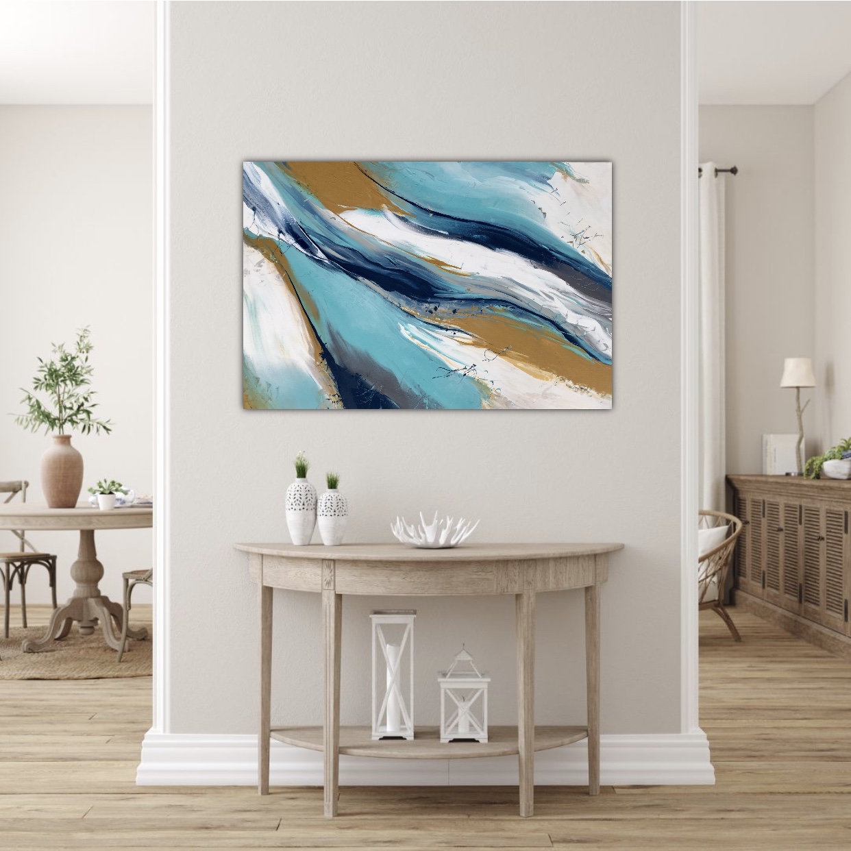This beautiful acrylic pour is a tribute to our beautiful oceans which surround our wonderful country Australia. Depending on where you like, the ocean is different not only in looks but in habitat. Waters vary in temperature and so attract different types of marine life and ocean flora. The tides change, the sands shift, the momentum everlasting.