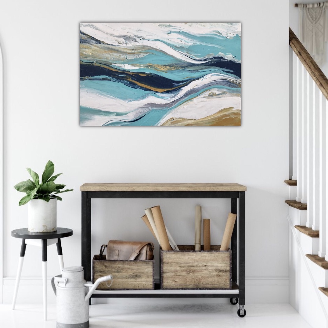 This beautiful acrylic pour is a tribute to our beautiful oceans which surround our wonderful country Australia. Depending on where you like, the ocean is different not only in looks but in habitat. Waters vary in temperature and so attract different types of marine life and ocean flora. The tides change, the sands shift, the momentum everlasting.